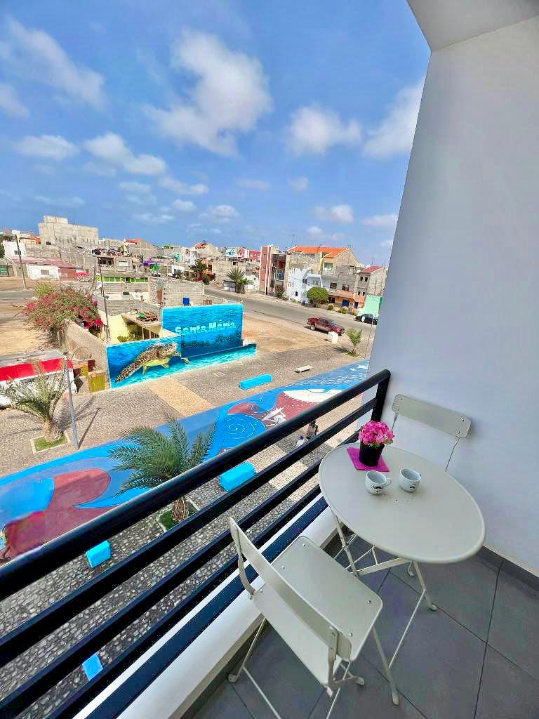 Procura um apartamento perto da praia e do centro de Santa Maria, na Ilha do Sal? Bem-vindo ao Animoss! Apartments 🌊 Desfrute deste lindo apartamento de 50 m² situado no segundo andar, com 1 quarto, sala de estar com cozinha, casa de banho e varanda. 📍 Localização perfeita: a apenas 3 minutos a pé da melhor praia da ilha e do centro de Santa Maria, onde encontrará todo o tipo de serviços. 🌐 WiFi Starlink gratuito e rápido incluído para o seu conforto