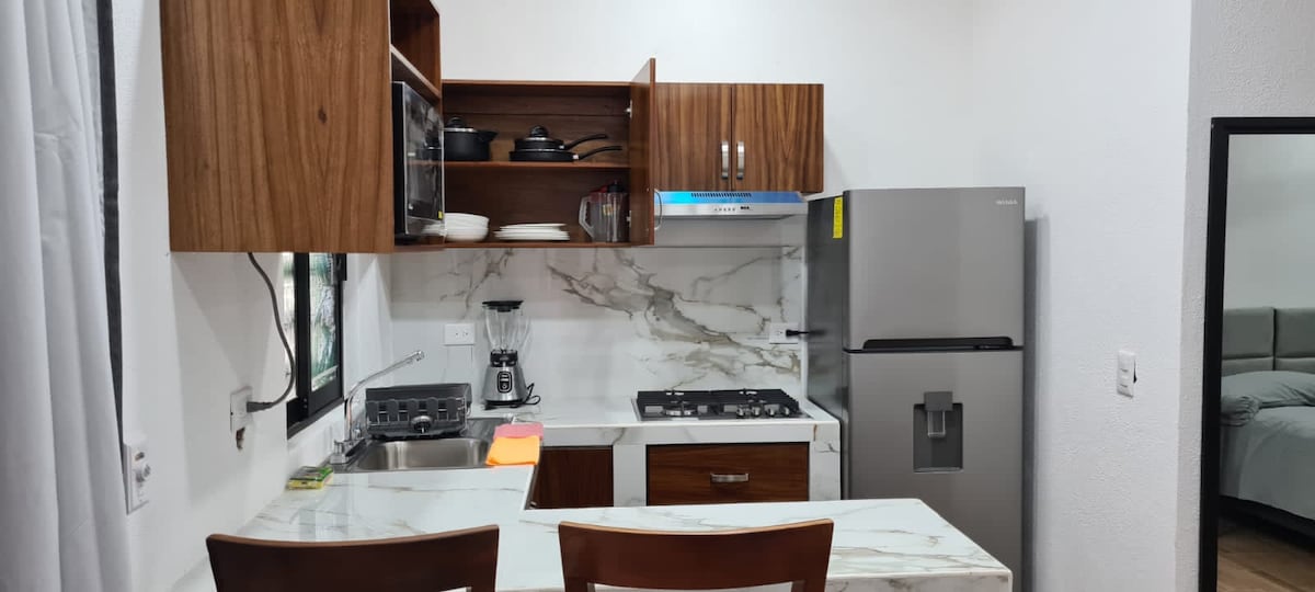 Es un departamento acogedor , cada detalle pensado en brindar comodidad a nuestros invitados. Aprovechando cada espacio para hacerlo funcional y cómodo puesto que son departamentos pequeños . Solo necesitas llegar con tu maleta porque tenemos todo lo que necesitas para una estancia cómoda .