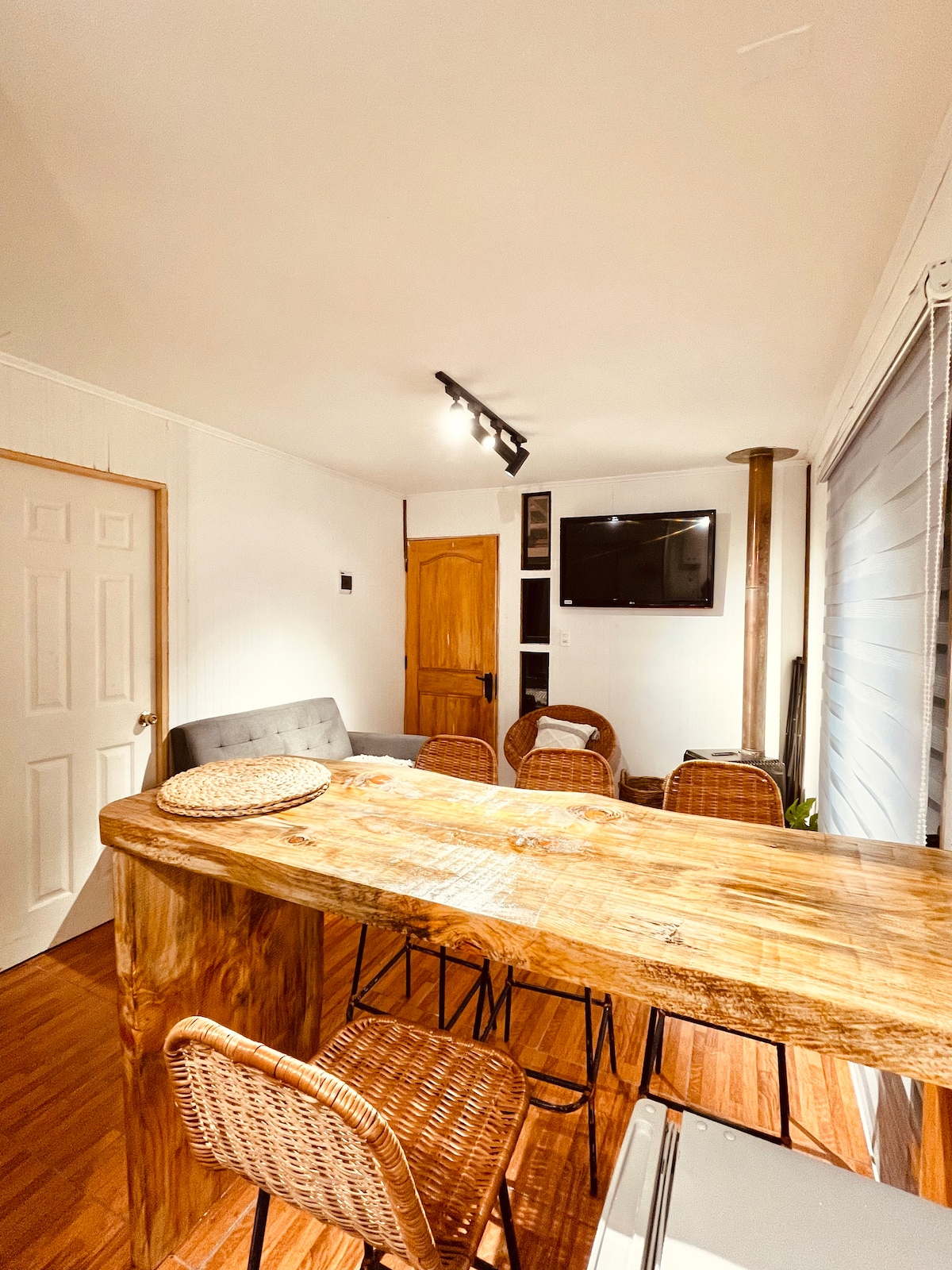 Estúdio novo e aconchegante na melhor localização de Pucón, a poucos passos da praia grande, do centro e isolado do barulho da rua principal. Possui uma cama de casal, um futon de casal, cozinha totalmente equipada, banheiro completo, Wi-Fi, TV 49" com Netflix, Disney+ e muito mais, terraço, aquecimento, churrasqueira, cafeteiras, 2 bicicletas de uso ilimitado, entre outros. Estacionamento público em frente ao acesso ao edifício disponível. Inclui roupa de cama, toalhas e suprimentos básicos de banho e cozinha para cada estadia.