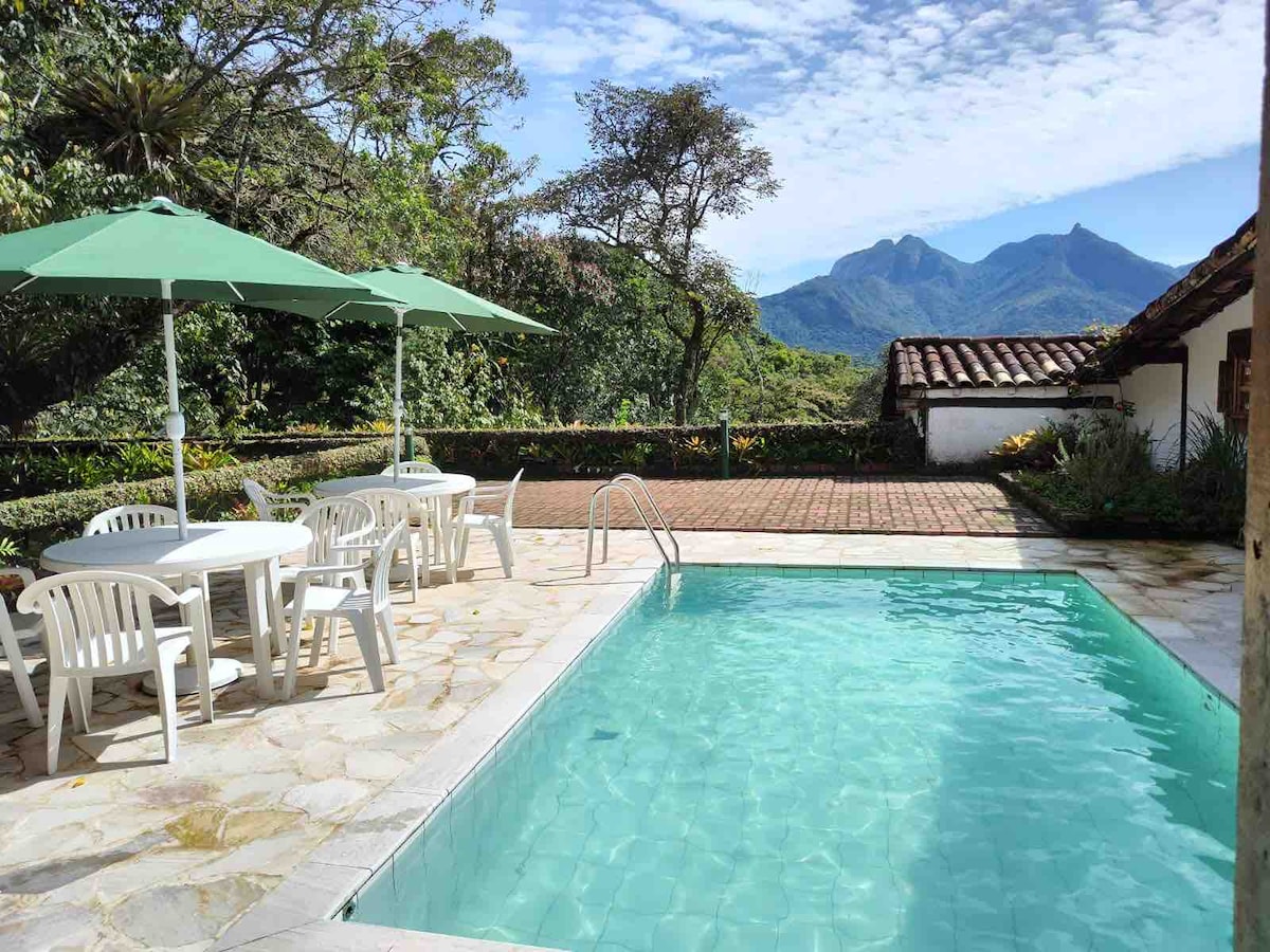 Sítio maravilhoso dentro de uma fazenda... você vai dormir com o barulho dos grilos e acordar com os passarinhos Micos, corujas, dezenas de pássaros, uma paz e tranquilidade Ficamos no meio da estrada RJ 122, a 10 minutos de Guapimirim e de Cachoeiras de Macacu... com mercados e comércio no Km 23 a 5 minutos de carro São 10.000 metros de lazer com piscina, rede de vôlei, campinho, churrasqueira e espaço gourmet, varandão, rede Internet com 100mb, TV SKY com canais de filmes e brasileirão