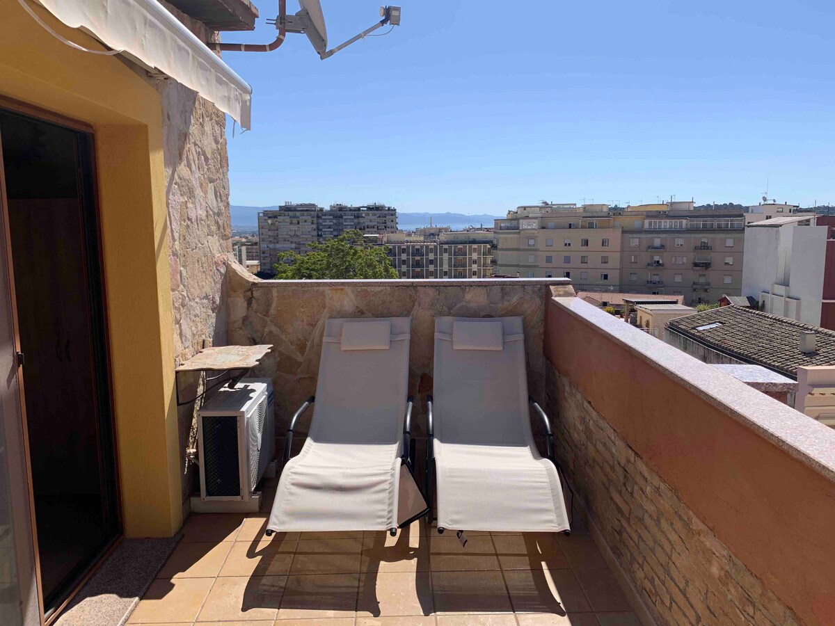 Bem-vindo ao nosso belo e luminoso loft, com acabamentos finos, localizado dentro das antigas muralhas na parte mais alta do centro histórico de Cagliari, o Bastião de Santa Cruz. À disposição dos hóspedes, além de uma vista deslumbrante de arrepiar, você encontrará todo o conforto para passar férias agradáveis em total relaxamento e uma vaga de estacionamento no pátio. A Torre dell'Elefante, a Catedral e outros monumentos importantes, bem como restaurantes típicos... estão aqui!