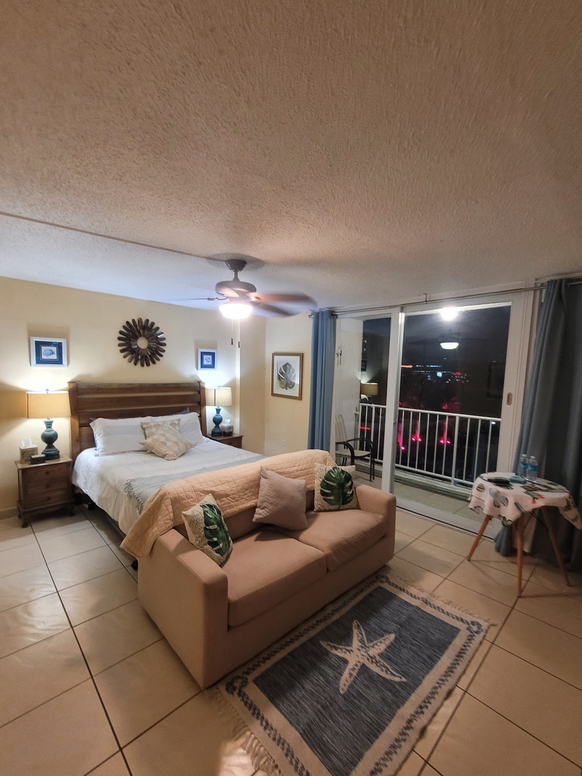 A unidade 512, a poucos passos do Caribe Hilton e da entrada da antiga San Juan, oferece uma fusão de história e luxo. Esta suíte king dispõe de banheiro completo, cozinha compacta e lavanderia. Aproveite a DirectTV na Smart TV ou trabalhe remotamente em nossa escrivaninha. Conheça Porto Rico e relaxe com conforto em nosso condomínio perfeitamente situado.