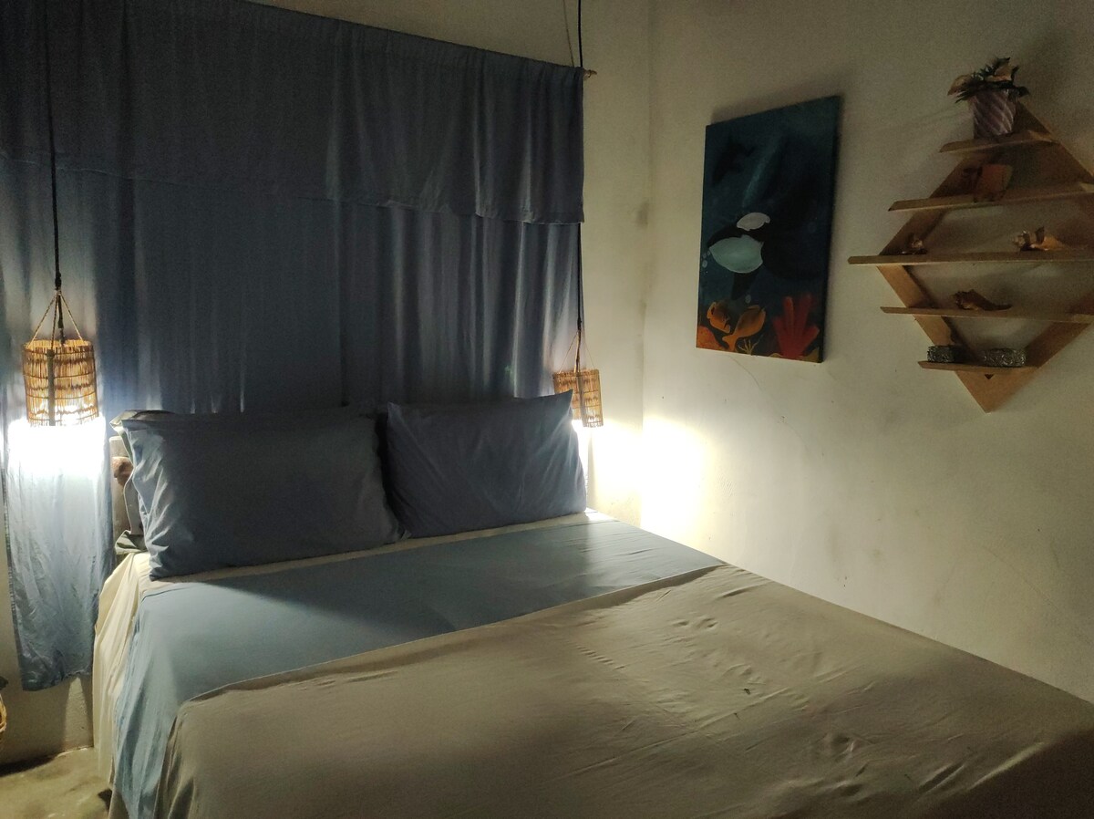 A Casa Caju possui dois quartos, sendo uma suíte. A Suíte Mar possui uma cama de casal e o Quarto Selva possui duas beliches de solteiro. Também contamos com dois sofás-cama de solteiro na sala, que podem ser utilizados para dormir. Além disso, possuímos diversos armadores para redes espalhados por toda a casa. Nossa cozinha é completa com todos os utensílios necessários para prepararem suas refeições. Fornecemos roupa de cama e roupa de banho, além de kit de higiene com shampoo e condicionador.