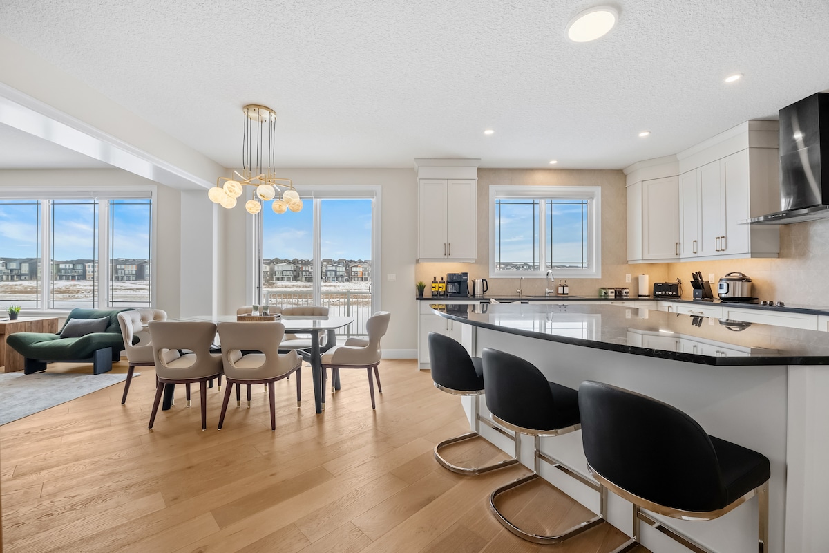 Este lugar elegante para ficar é perfeito para viagens em grupo. A menos de 15 minutos do aeroporto. Fica em um bairro familiar tranquilo e está convenientemente perto de inúmeras lojas (Costco, Crossiron Mills, T&T supermercado nas proximidades). Você vai adorar os 4 quartos confortáveis com 1 cama king e 3 camas queen, 2 salas de estar, 3 banheiros completos, cozinha iluminada e quintal grande. Smart TV com Netflix. Internet de alta velocidade. Ótima vista para Rocky Mountain a partir do andar superior. 1 hora para Banff através da Stoney Trail.