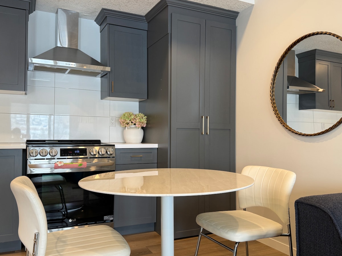Estacionamento subterrâneo aquecido GRATUITO. Recém-reformado 2 quartos 2 banheiros com vista para o pátio do Saddledome. O rio fica a apenas 2 minutos a pé, você também pode caminhar até o Stampede Ground e o Flames Game/Scotiabank Saddledome em 7-8 minutos. O grupo terá fácil acesso a tudo o que precisar neste lugar com excelente localização.
