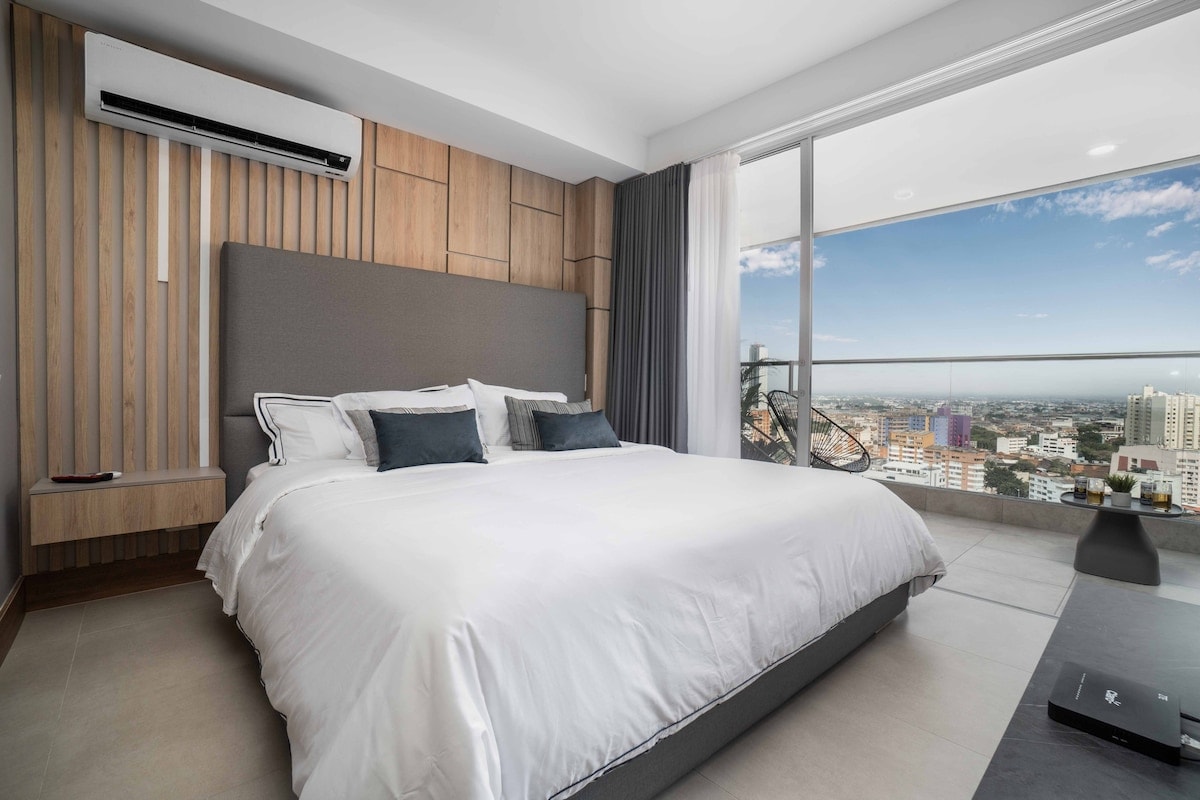 Estúdio de cobertura de luxo no vibrante bairro de Granada, em Cali, com vistas deslumbrantes da cidade. Ideal para viajantes solitários ou casais. Acomoda até 2: cama queen size, sofá-cama de tamanho médio (80x160 cm). Desfrute de cozinha completa, lavanderia na unidade, terraço, além de acesso à piscina, academia, spa, coworking e salas de reuniões. Aprimore sua estadia com aulas de salsa, passeios ecológicos, observação de baleias e chefs particulares, motoristas e massoterapeutas opcionais — tudo selecionado especialmente para você. RNT: 251456
