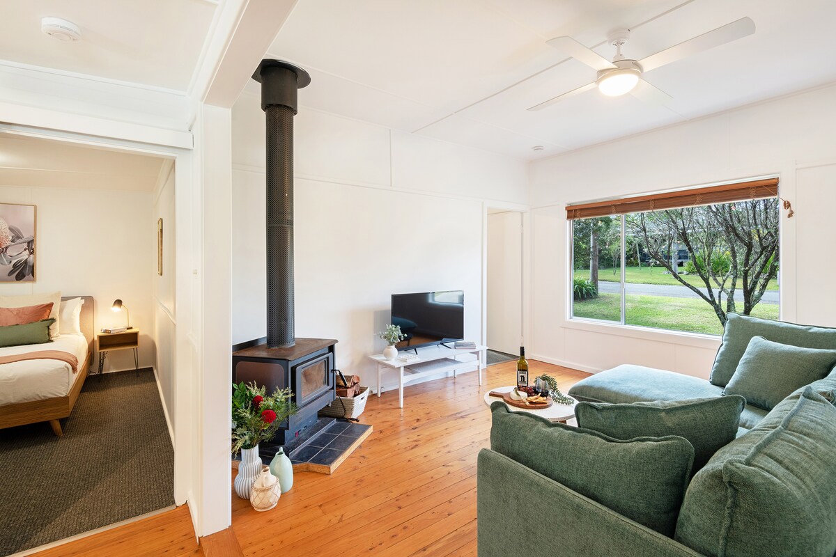Just a short walk to the centre of town, Huskisson beach & Moona Moona Creek, yet extremely private & surrounded by bush, you'll find charming Berry St. Enjoy the nature rich peace & tranquility whilst being just minutes from the best breweries, brunch spots, bakeries, boutique shops & beaches of Jervis Bay. The cottage has been lovingly restored, beautifully styled & fully equipped. Its log fire promises cosy nights whilst the large back deck, BBQ & leafy yard offer incredible alfresco living.
