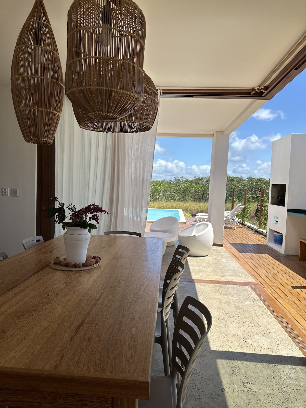 Com piscina privativa, área gourmet completa com churrasqueira e uma vista deslumbrante para um lago cercado por natureza, a Casa Villa Roma oferece uma estadia com conforto, elegância e privacidade. A casa oferece fácil acesso aos principais atrativos: •Vila de Barra Grande, com seus restaurantes, cafés e comércio local (10min. a pé) •Ponta do Mutá, famosa pelo pôr do sol magnífico (30 min. a pé) •Piscinas naturais de Taipu de Fora (15 minutos de carro)
