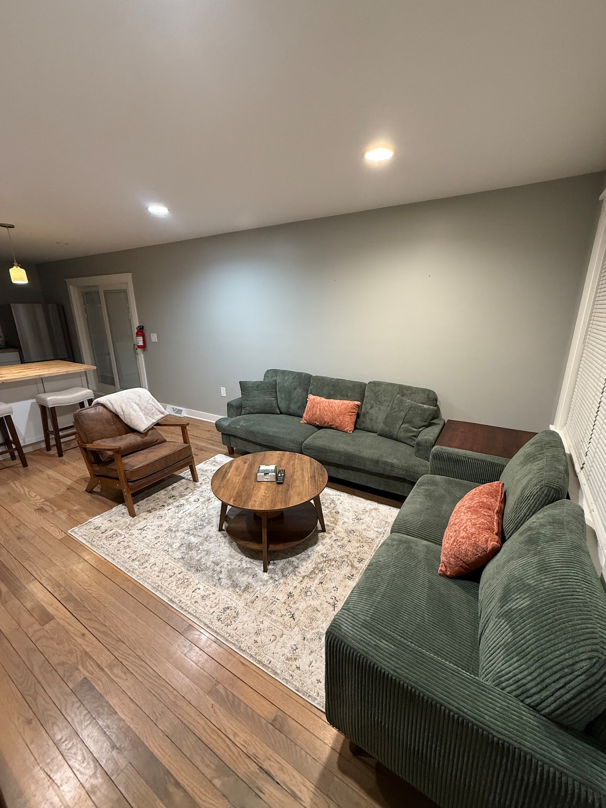 Your family will be close to everything when you stay at Aire Leclaire! Within walking distance from downtown and 2 blocks from American Pickers. This modern 2 bedroom, 1 bath home is a block away from the tugfest parade route. A barnyard turned farmhouse in the 1940’s, this home completely remodeled with the modern farm charm it has today. In town for a day or several, enjoy outdoor amenities, a lighted deck, outdoor couch, and table. Inside, a modern LED fireplace mixed with rustic beauty.
