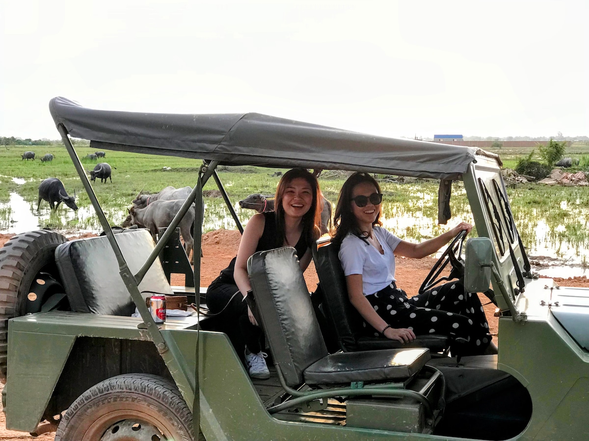 4.9 de uma avaliação média de 5, 105 avaliaçõesA autêntica paisagem cambojana de jipe vintage