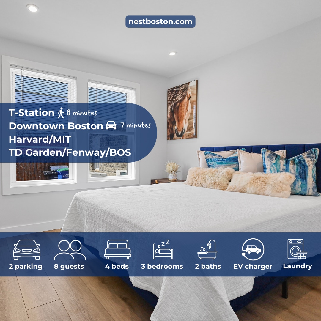 Step into the comfort of a beautiful 4BR 2.5BA immersed in a quiet & friendly neighborhood steps from Assembly Row & 5 minute walk to E Somerville subway. A relaxing, spacious, and modern getaway close to amazing restaurants, shops, local attractions, & landmarks. Stylish and modern design, space for the entire family & amenities that will satisfy your every need. ✔ 4 Bedrooms ✔ Fully Equipped Kitchen with professional appliances ✔ 65" TV ✔ High-Speed Wi-Fi ✔ Free Parking ✔ EV See more below!