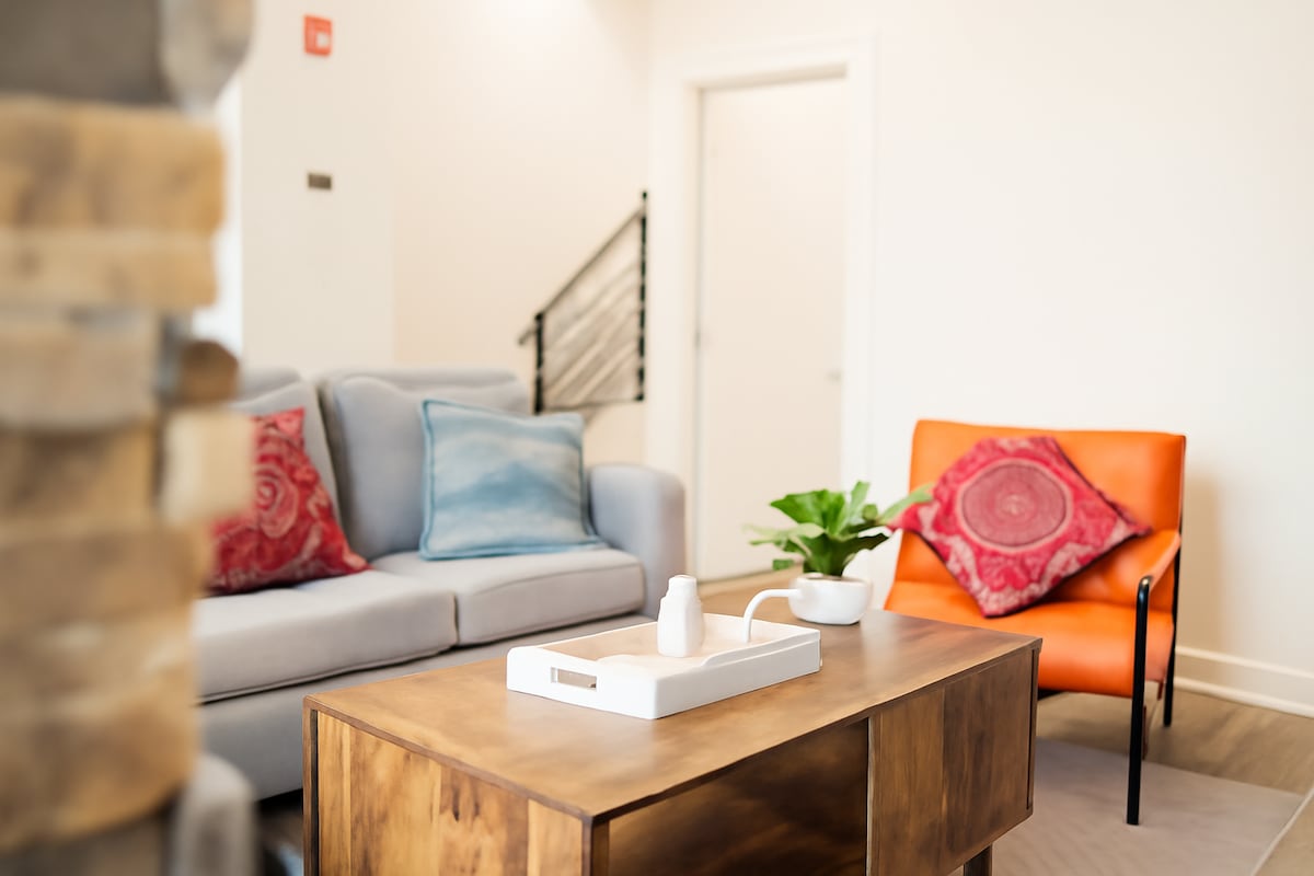 ✨ Caminhe até restaurantes aclamados e vida noturna 🍿 TV com projetor 🎶 5 min para The Fillmore e locais de música ao vivo 🕰 10 minutos de carro do Liberty Bell e da Cidade Velha 🎨 12 minutos para o Museu de Arte da Filadélfia e Rocky Steps Fique no coração de Fishtown neste elegante apartamento de 1 quarto que acomoda 4 pessoas, com design arrojado, chuveiro tipo spa, TV projetor e lareira aconchegante. Rodeado pelos melhores restaurantes, cervejarias artesanais e cafés, você estará a poucos passos da ação e a poucos minutos dos marcos icônicos da Filadélfia.