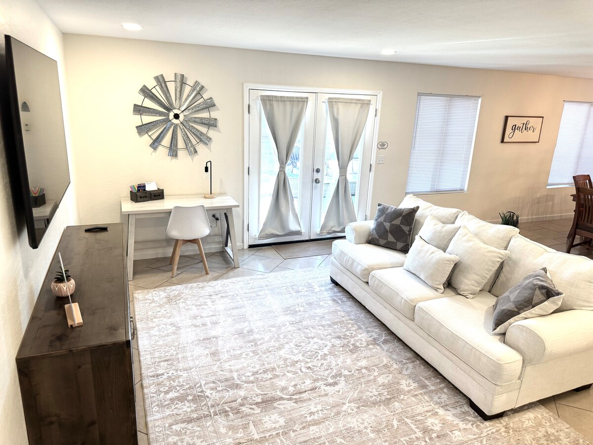 Retiro principal king perto de tudo! 3 quartos e 2 banheiros com banheira oval principal e chuveiro separado, todos remodelados. Tetos abobadados por toda parte e ventiladores de teto. Quintal de bom tamanho com campo atrás. A apenas 5 minutos da autoestrada, Raceway, Top Golf, restaurantes, State Farm Stadium, outlets e centros de treino. 15 do aeroporto de Phoenix. A casa está centralmente localizada com uma piscina refrescante separada para desfrutar em suas próximas férias . Garagem de 2 carros com acesso MyQ e porta inteligente.
