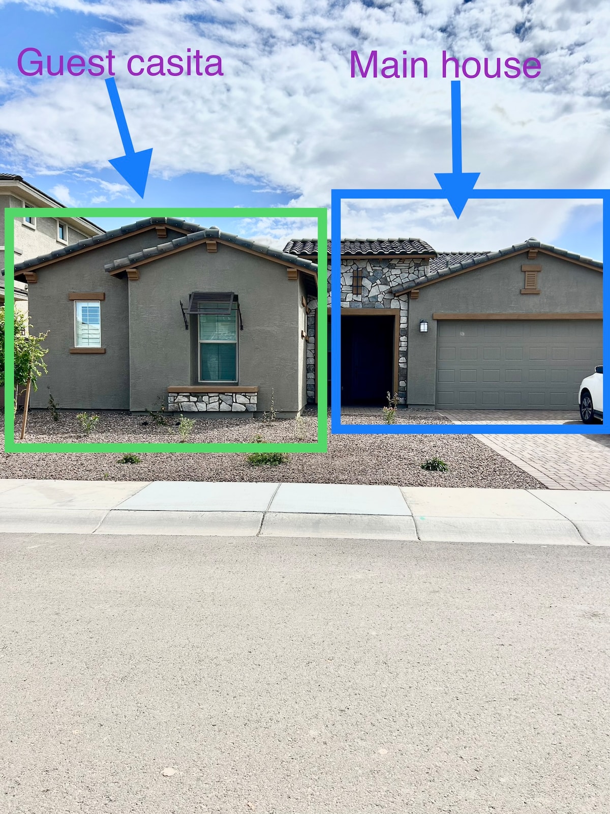 Welcome to our brand new casita, located less than 2 miles from the State Farm Stadium, Desert Diamond Arena and only 15 miles from the airport. Our casita is attached to the main home but has its own smart lock entrance ensuring complete privacy for your stay. It boasts a separate living area. Enjoy a delightful single-serving coffee/tea in the morning. Our family in the main house has a Chi-doodle pet.