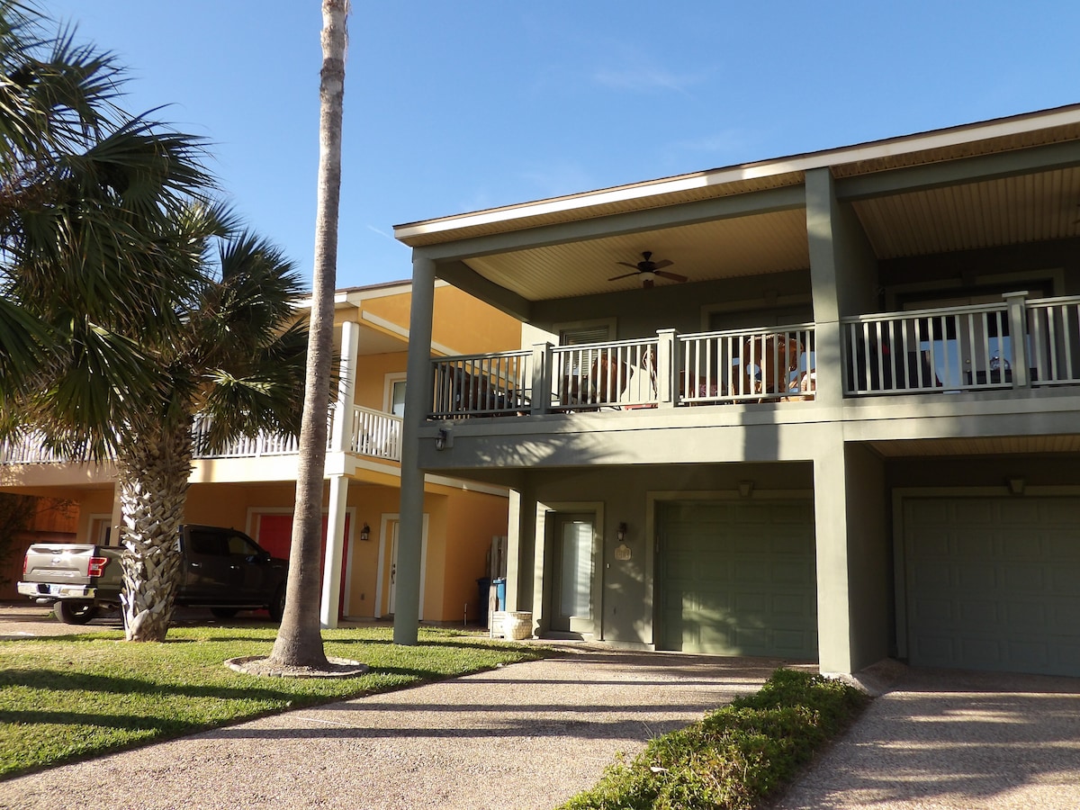 STEPS FROM THE BEACH! LUXURIOUSLY appointed in a spacious, bright, modern style, we made every detail perfect. The most beautiful sunrise you will ever see awaits you every morning. Every night, a beautiful sun sets over the Laguna Madre! Your lodging will be equally inspiring. Our ground level (No stairs!) condo is beautifully equipped, with spacious 10 ft high ceilings, LED lighting, new furnishings and appliances, smartTVs in all rooms, located easy walking distance to everything. ENJOY!
