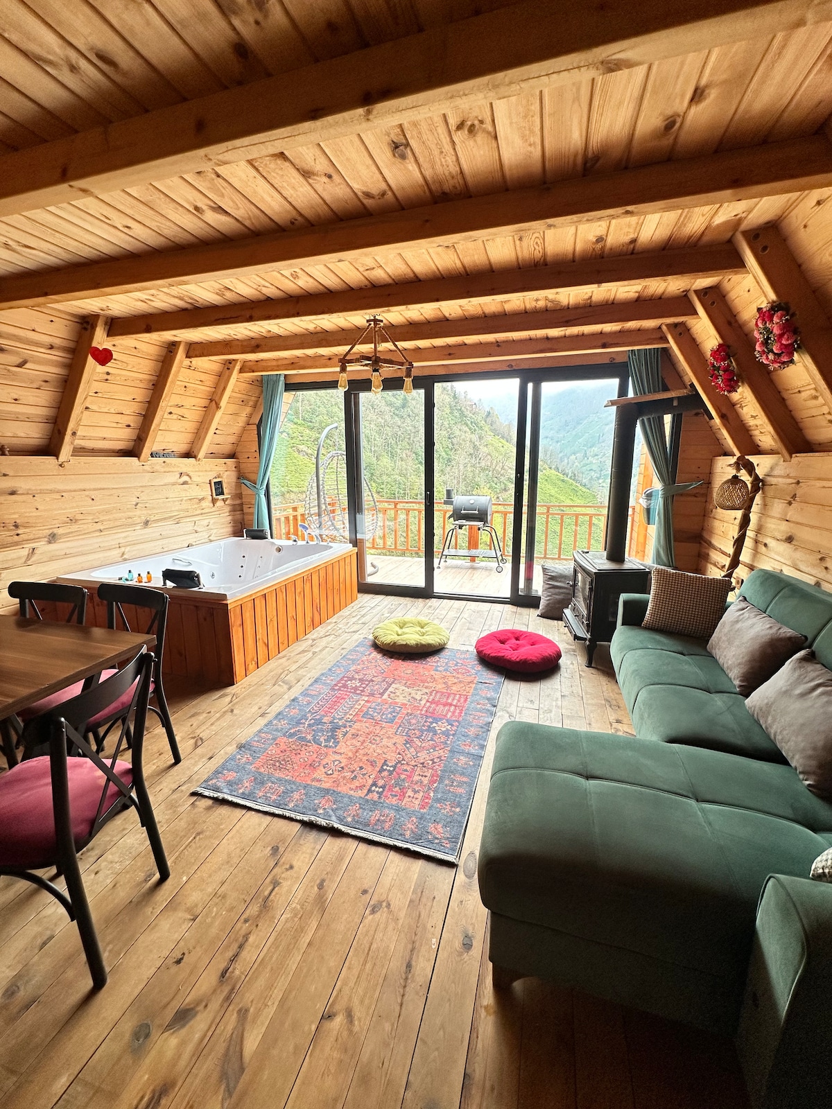 Nossa casa de ultra luxo está equipada com jacuzzi, fogão e churrasqueira com lareira. Ele foi projetado como se ninguém pudesse ver você. É um restaurante onde você pode saborear nossos produtos naturais em nossa empresa familiar e, se desejar, pode experimentar cozinhar pratos locais com minha mãe em nossa cozinha e acompanhar a vida local em nosso campo de chá. Nossa filosofia é fazer com que você se sinta em sua própria casa e combinar luxo com minha idade natural.🥰