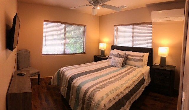 2 hóspedes apenas. 2 cães ok. Nenhum hóspede adicional a qualquer momento. Apenas 1 veículo. Jardim privativo cercado/pátio privativo. quarto grande: cama queen size, mesa, banheiro. Tem frigobar, micro-ondas e uma lareira keurag que não funciona. Aquecedor de parede e ar-condicionado de janela Wi-Fi, TV Roku. Há 2 aluguéis nesta propriedade. Veja as fotos para ver a proximidade de outra unidade. Cães não podem ser deixados autônomo. Não são permitidos incêndios durante a temporada de incêndios. Não são permitidos trailers. Check-in às 14:00 O checkout é às 10:00.