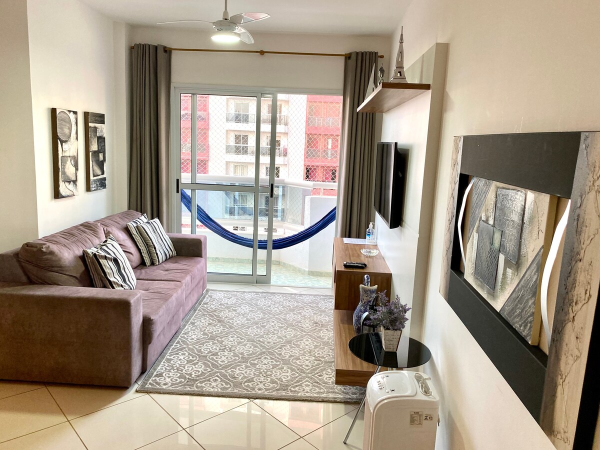 Apto tipo estudio com os ambientes separados. Um quarto com armário embutido e mesa para home office, 2 TVs (sala e quarto), Net Combo com mais de 200 canais HD e Wi-Fi de alta velocidade. Há ventiladores de piso em todos os ambientes além de microondas, airfryer, fogão, geladeira duplex e todos os utensílios de cozinha. O banheiro é privativo com box de vidro. Possui máquina de lavar roupa. Meu apto não possui vaga de garagem, porém, indico uma moradora que costuma locar dentro do prédio