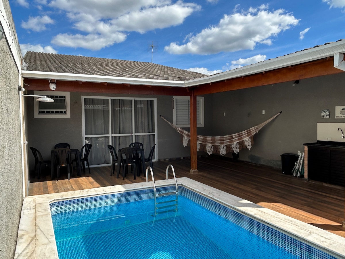 Encante-se com nossa chácara, perfeita para famílias que buscam lazer e descanso. Conta com piscina aquecida (26–32 °C), churrasqueira e amplo quintal murado, com portões fechados, garantindo segurança para crianças e pets brincarem e se divertirem livres. A casa possui 1 suíte, 1 quarto de casal e 1 quarto com camas de solteiro, todos com ar-condicionado, além de banheiro social, cozinha integrada, lavanderia e espaço gourmet amplo e ao lado piscina. Viva momentos inesquecíveis!