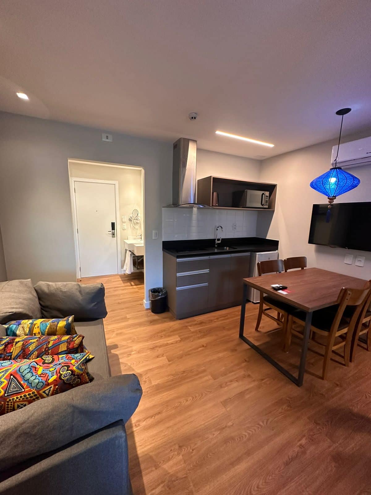 Destinado àqueles que buscam a privacidade de "estar em casa" sem abrir mão do conforto e das facilidades que um Hotel Boutique de elevado padrão, novo e bem localizado pode oferecer, o apto do Wanderlust dispõe de cama queen-size, sofás-cama, cozinha compacta e varanda com banheira de hidromassagem e cadeiras. Possui enxoval completo, que inclui roupas de cama, toalhas higienizadas. Serviço de quarto diário disponível. Tenha uma experiência incrível neste lugar diferenciado e aconchegante.