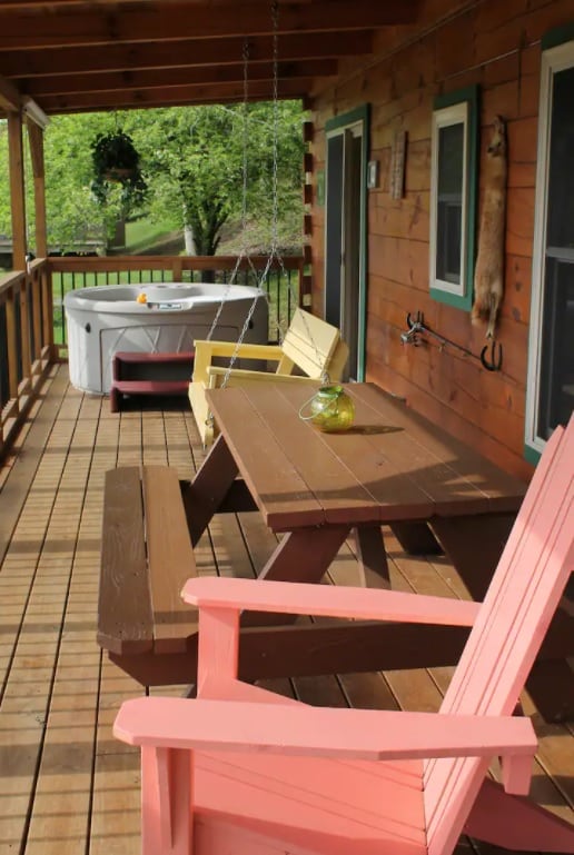 O lugar único tem um estilo próprio. É privado, com um ano de idade e trabalhado à mão pelo proprietário. Sem ANIMAIS. Pequeno mais de350 pés quadrados. Planta baixa aberta, sem quarto separado. Grande varanda da frente com balancins de madeira. A cozinha é muito pequena, com quase tudo, exceto o forno. Tem duas pequenas lagoas com peixes, postes emprestados e equipamentos no armário, sem necessidade de licença. É na floresta que há vida selvagem, riacho e árvores antigas para ver. Churrasqueira a carvão estilo parque no quintal. Rede, área de piquenique em lagoas.