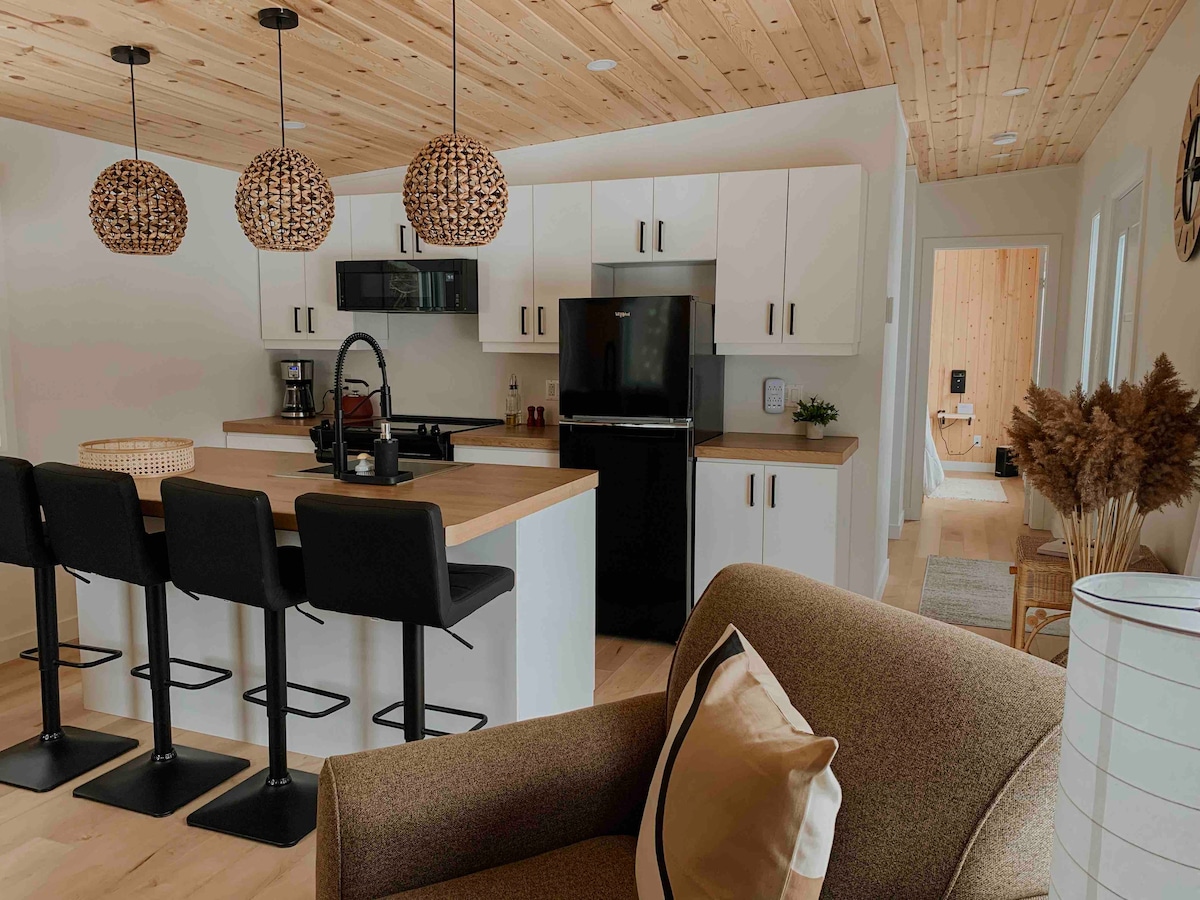 CASA NOVA — A poucos passos do restaurante Le Bootlegger, esta magnífica casinha oferece serenidade e tranquilidade para você e sua família ou amigos (máx. 4 pessoas). Com seus detalhes de paredes interiores em madeira, você encontrará modernidade e tranquilidade. A menos de 15 minutos do centro da cidade de La Malbaie. Nossa casa foi totalmente projetada e construída por nós mesmos (ou melhor, pelo meu cônjuge empreiteiro, hihi). Atenção - a terraplenagem externa será realizada em breve (gramado). CITQ: 306556