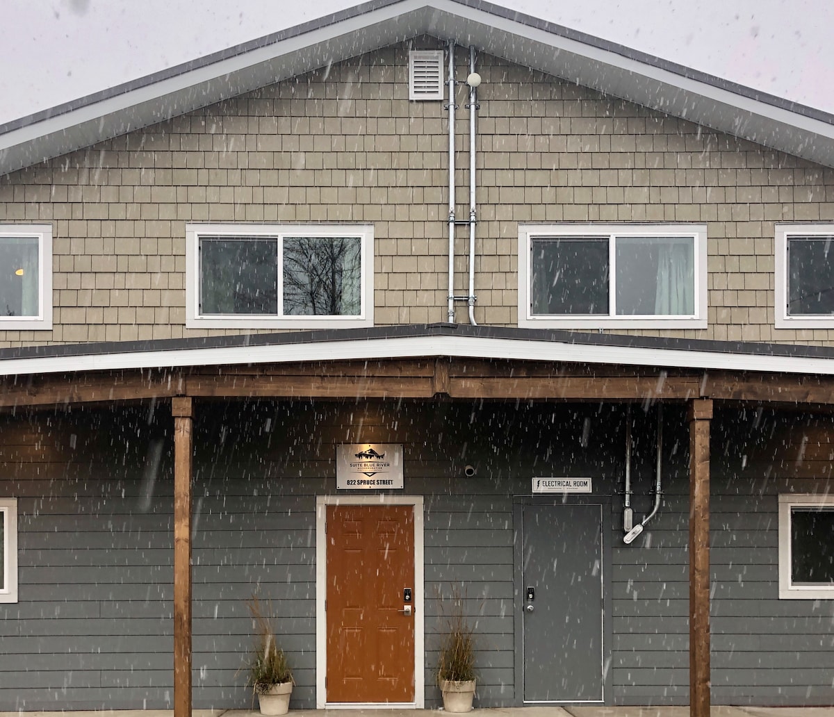 Upper level, two bedroom suite, complete with a twin size pullout ottoman sofa bed in the living area. One room has a queen sized bunk bed, and the other has a king sized bed, both featuring Canadian made Douglas mattresses and luxurious bedding to ensure a good night's rest. You will have a full kitchen, dining and living areas, private laundry and a full bathroom, including a shower/tub combo. This suite is equipped with a 60" Smart TV, and complimentary WIFI.