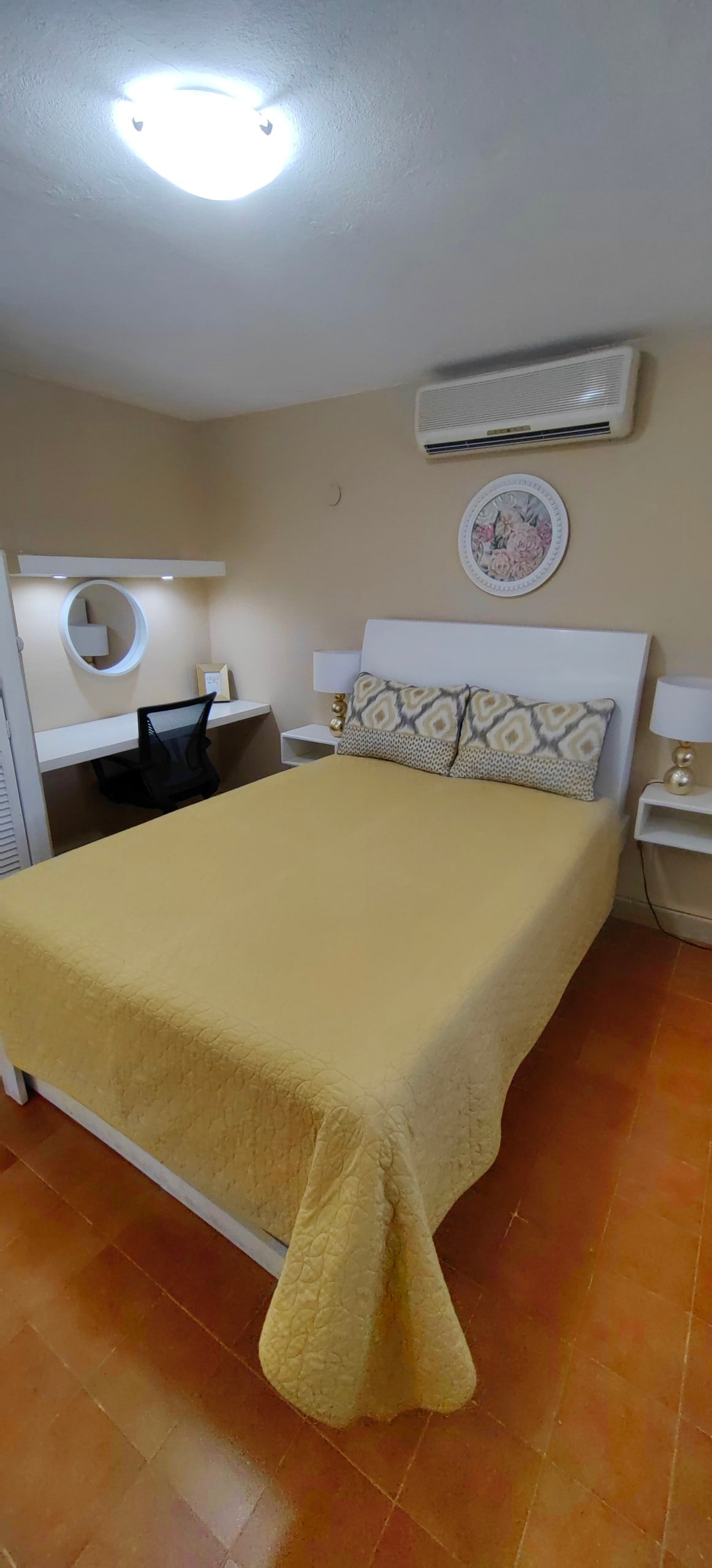 Apartamento aconchegante de um quarto localizado no sul de Cancún. A 15 minutos da zona do hotel e a 18 minutos do aeroporto. O apartamento dispõe de: - Uma cama king-size - Um sofá-cama de casal - 1 banheiro - Cozinha equipada (fogão, micro-ondas, geladeira e cafeteira) - Unidades de ar-condicionado. Informações importantes: o anúncio corresponde a um apartamento localizado no andar superior. O prédio não possui elevador. O saguão localizado no térreo e a piscina são áreas compartilhadas.