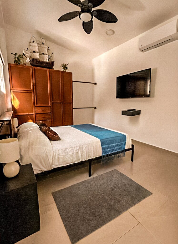 Unwind in our sun-drenched sanctuary! This cozy, sparkling clean studio in a charming Mexican neighborhood is perfect for 2-4 max guests. Relax in the plush full-size bed, lounge on the sofa-bed, or sway in the hammock for an afternoon siesta. Catch a movie on the 32" Smart TV after exploring. You’re just 5 minutes from the beach, downtown, and the Isla Mujeres ferry. Affordable, quiet, and full of heart—your peaceful Cancún escape starts here. Book your stay today!