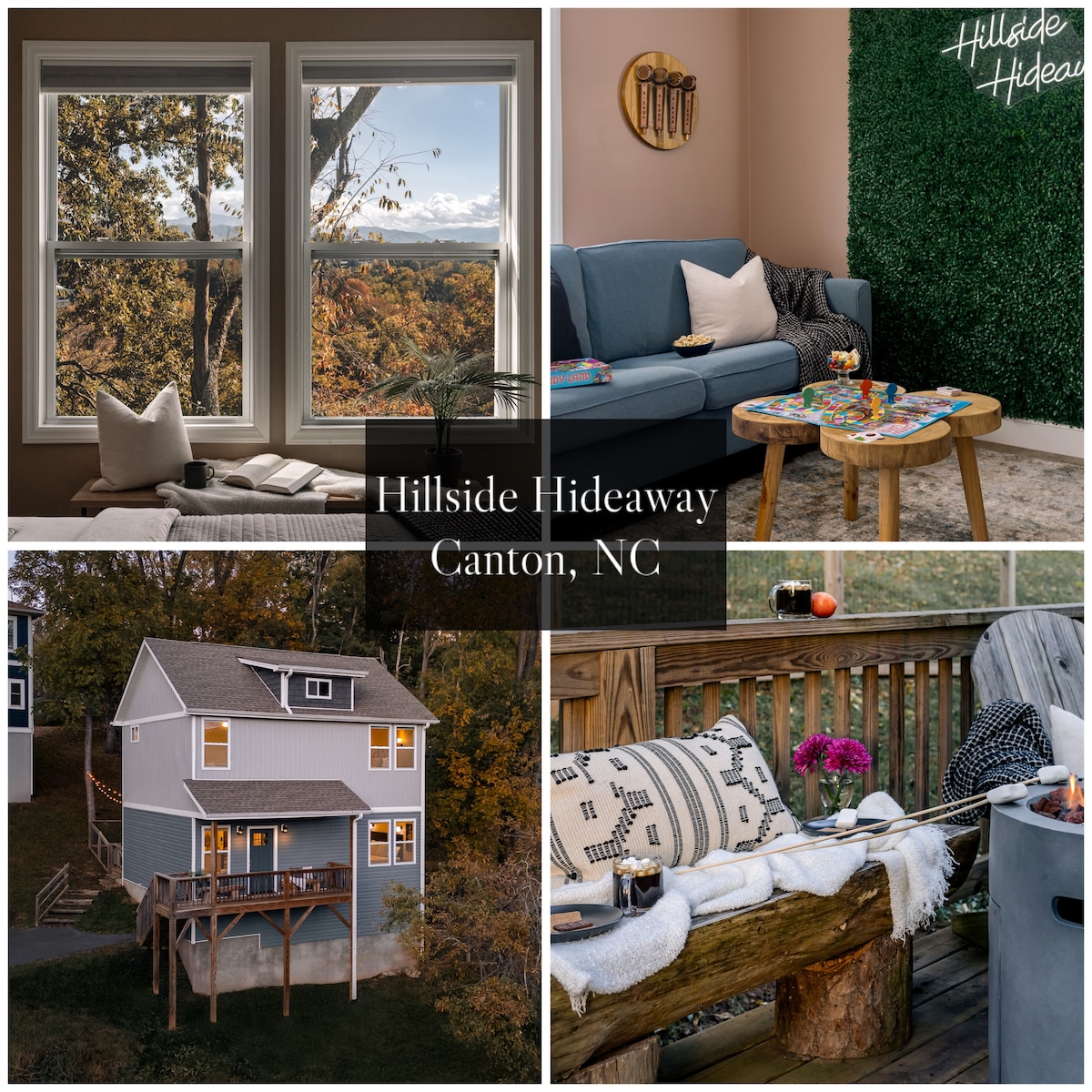 Designer 3 quartos/2 banheiros paraíso com pôr do sol no deck da montanha, Wi-Fi rápido, lareira e estacionamento fora da rua em uma rua sem saída tranquila. Caminhe 1,1 km até os cafés históricos da Main St, cervejaria e o Pigeon River Greenway. 3 min de bicicleta até as trilhas de fluxo de Chestnut Mountain/Berm Park; 20 min até Asheville Arts, 15 min até Waynesville, 22 min até Maggie Valley ski, 20 min até Lake Logan paddling e cachoeiras Blue Ridge Parkway <30 min. Self check-in que aceita cães — perfeito para quem gosta de caminhadas, ciclismo, remo e trabalho remoto.