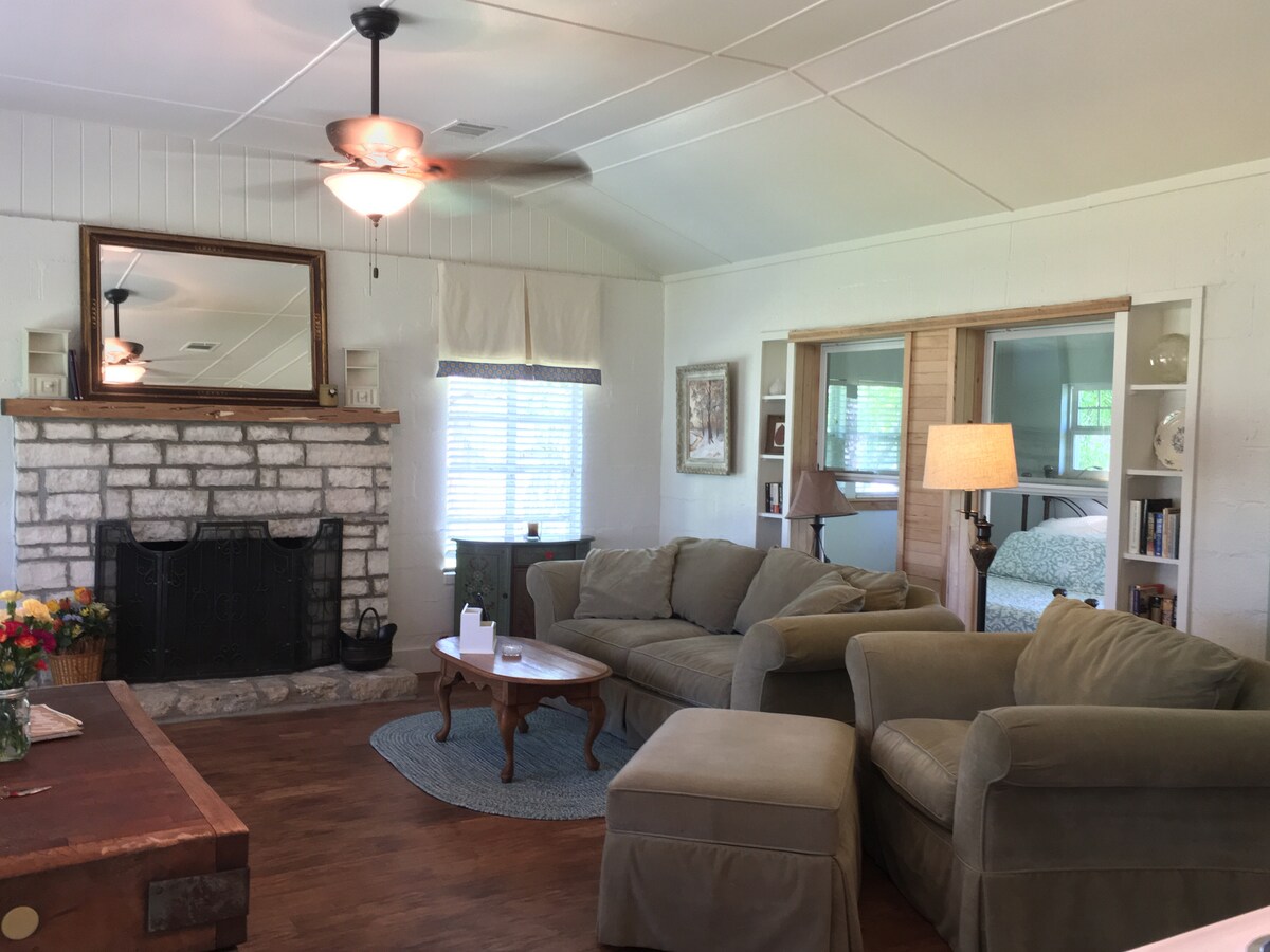 Localização! Situado a poucos passos de Cypress Creek, Bella Rosa é uma casa de campo de um quarto que é o lugar perfeito para fugir de tudo. Paz e tranquilidade estão na ordem do dia e, no entanto, é uma curta caminhada (4/10 milhas) até a Wimberley Square! Casa lindamente decorada, onde você pode preparar café da manhã ou escolher entre uma seleção de chás e, em seguida, saboreá-los em Cypress Creek. Você pode passar um dia tranquilo ou movimentado na área e, em seguida, relaxar na frente da lareira de madeira de pedra ou observar a vida selvagem