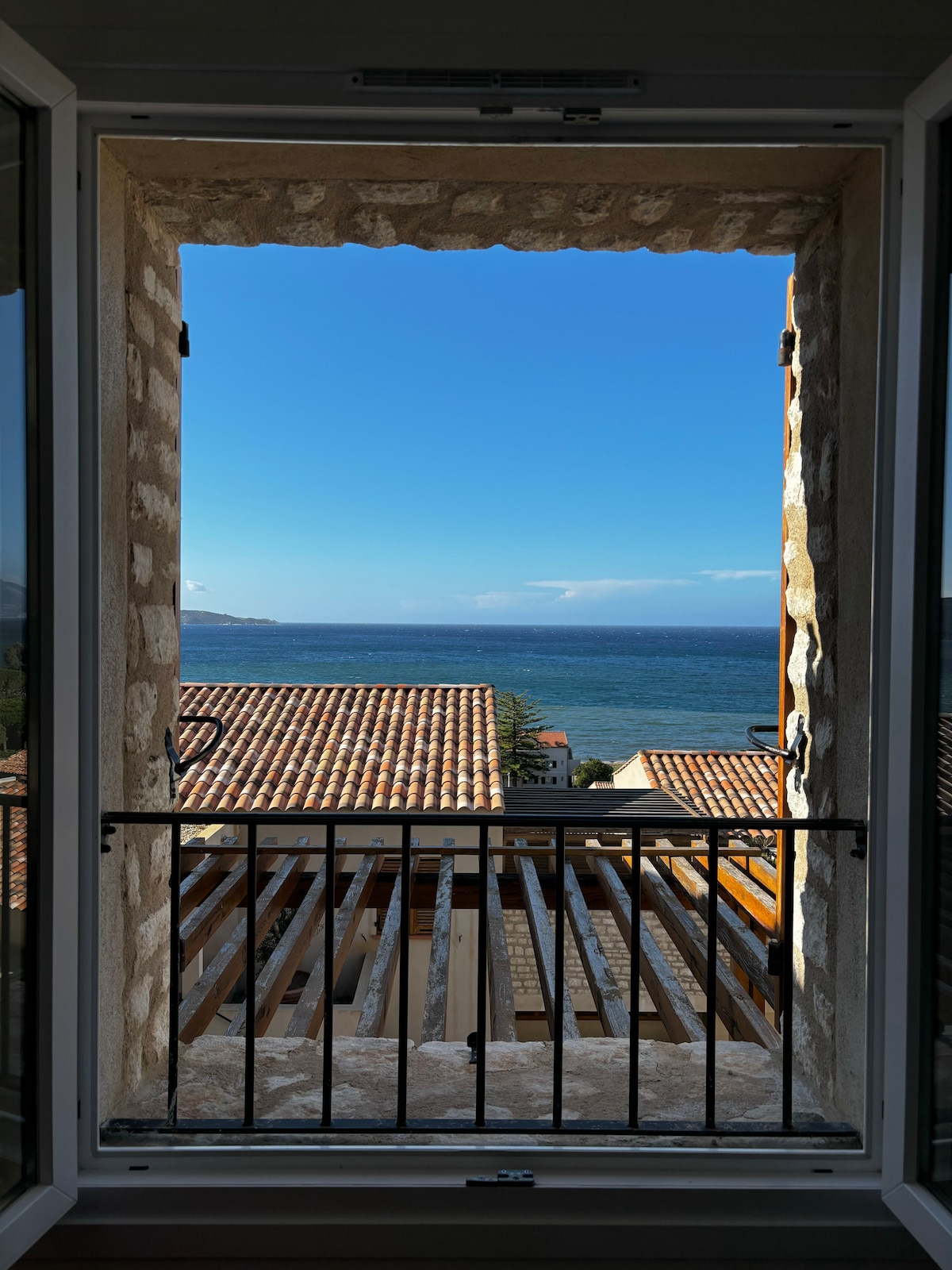 Luxe, calme et Volupté. "Chez Marie" grand T2 de 60 m2, lumineux, spacieux et climatisé en plein coeur de l'un des plus beaux villages du cap Corse, Erbalunga. Tout le village est pieton. un joli balcon sur la mer est accessible de chaque pièce et offre une vue panoramique sur le village. Erbalunga est un lieu unique et inoubliable, ses petits bars, ses restaurants de pêche locale. Concerts et conférences. Plage, criques paradisiaques. Point d'ancrage stratégique pour visiter le Cap Corse.