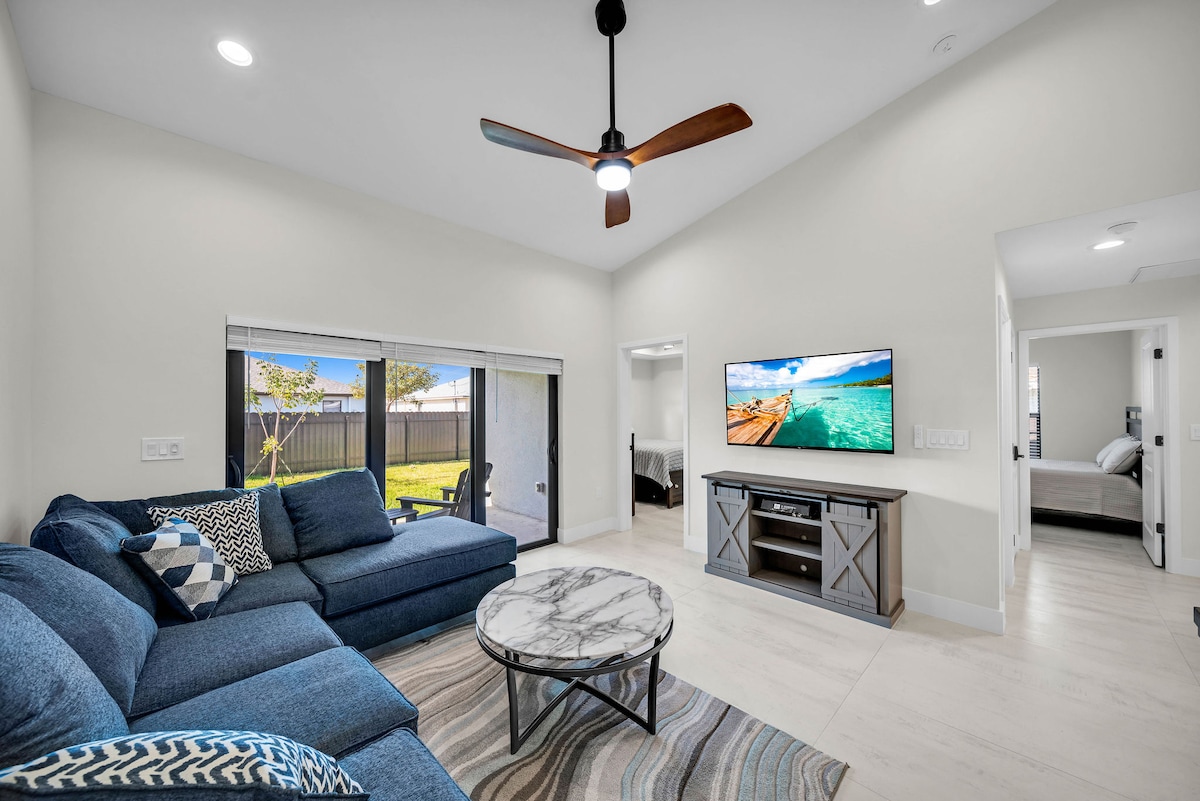 Relaxe nesta casa moderna e familiar. Construída em 2022, esta casa incorpora tons frios e neutros em todos os lugares. Foi profissionalmente decorada para sua diversão. Tudo, desde brinquedos de piscina a jogos de tabuleiro e itens essenciais de cozinha, é fornecido. Isso inclui cadeiras de praia, um guarda-chuva e um refrigerador se você decidir fazer a curta viagem para Ft. Myers Beach ou Sanibel! Nós nos esforçamos para fazer de tudo para tornar sua estadia relaxante e agradável. Entre em contato conosco se tiver alguma dúvida.