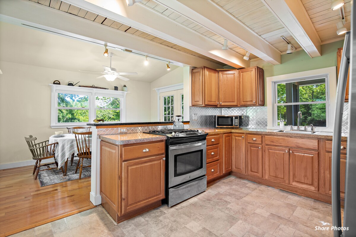 Esta casa encantadora e totalmente renovada não é apenas “cães permitidos”, mas é verdadeiramente amigável para cães. Traga seu melhor amigo e desfrute de tudo o que a região tem a oferecer. A propriedade tem quase dois hectares de floresta, que atraem pássaros interessantes para o quintal durante todo o ano. O primeiro andar oferece uma cozinha bem equipada, varanda de jantar, sala de estar confortável, lavanderia/meio banheiro. O andar de cima oferece um quarto principal com varanda com vista para a floresta, banheira com banheira e chuveiro de azulejos e um segundo quarto com duas camas de solteiro.