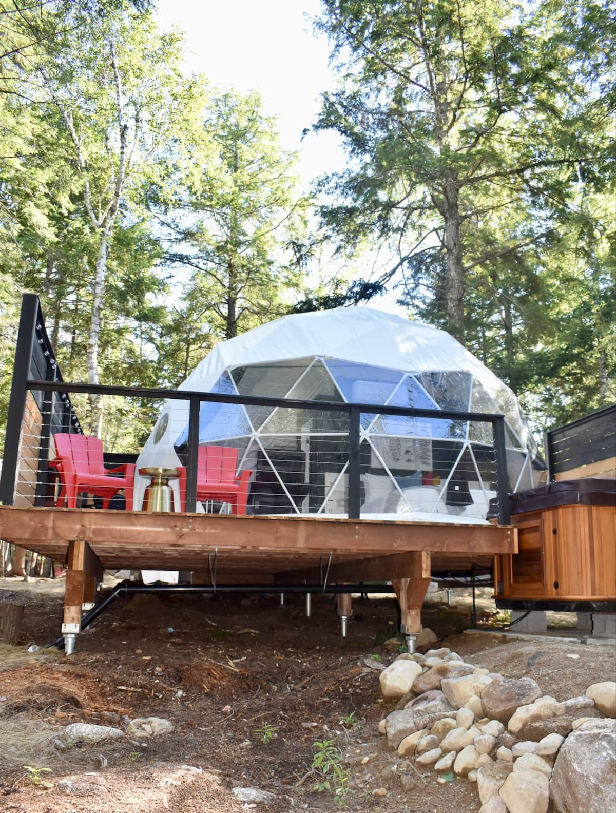 Casa de cúpula na floresta com banheira de hidromassagem privativa