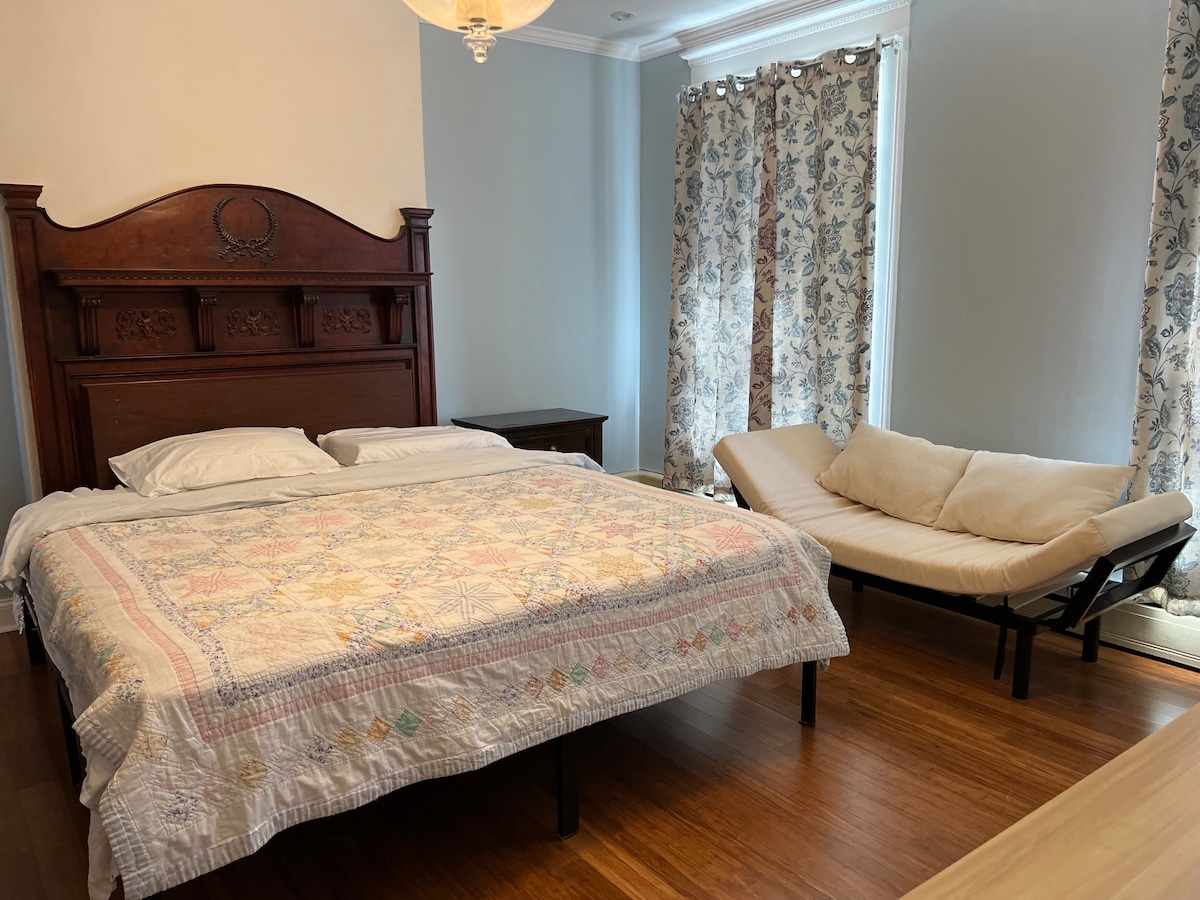 Bem-vindos! Estamos muito felizes em compartilhar com você o nosso quarto favorito em uma casa colonial georgiana de 1895. Esta confortável suíte com varanda é ideal para dois hóspedes ou uma família com uma criança pequena. Localizado em uma seção segura, tranquila e maravilhosa de Pittsburgh, estamos perto do zoológico e do Hospital Infantil, e a uma curta distância de carro do centro da cidade. Esta suíte tem sua própria entrada separada, banheiro e cozinha. As janelas de parede a parede têm vista para o jardim da frente, pátio e a casa vitoriana do nosso vizinho.