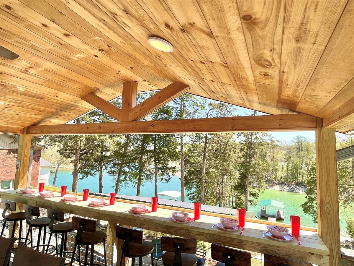 Na Easy Shores Lake House você pode passar horas pulando, nadando ou flutuando em nossa enseada privada sem rastro. Perfeito para uma viagem de caiaque pela manhã ao redor da ilha da enseada ou para o canal. Uma caminhada fácil até a doca coberta privativa com amarras no exterior para até duas embarcações adicionais facilita colocar sua embarcação na água e deixá-la acessível durante toda a viagem. Belas vistas para o lago do deck coberto serão seu lugar favorito para a vida ao ar livre nestas férias.