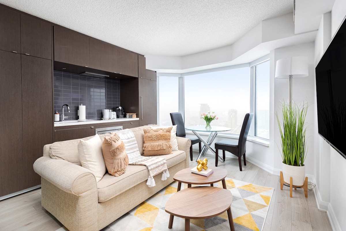 Alojado em um antigo Four Seasons Hotel no prestigiado bairro de Bloor-Yorkville, em Toronto, este moderno condomínio de alto nível coloca você no coração do centro de Toronto — acessível a pé, elegante e a poucos passos de museus, restaurantes aclamados, varejistas de luxo, boutiques e principais linhas de metrô. No interior, o quarto totalmente renovado apresenta tetos altos de 2,7 metros, móveis de grife, obras de arte selecionadas, roupas de cama de luxo e janelas iluminadas pelo sol — um refúgio urbano boutique para viajantes individuais ou em dupla.