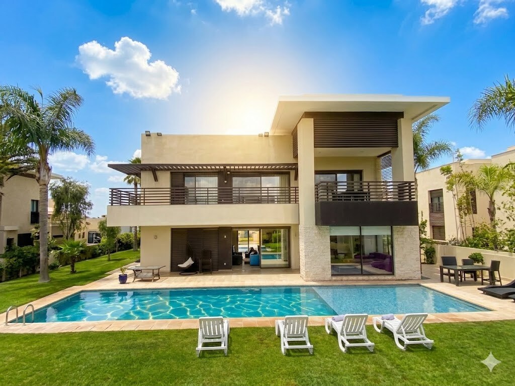Bem-vindo à Villa Casadiaa, um moderno retiro de 4 quartos com piscina privada, academia e escritório, situado em uma residência de luxo segura com quadras de tênis, padel e futebol. Projetado para conforto e estilo, oferece 3,5 banheiros, uma área de estar iluminada, lounge ao ar livre e equipamentos de ginástica premium. Perfeito para famílias ou grupos que buscam espaço, serenidade e lazer em estilo resort. Ideal para o trajeto de Casablanca, perto de Ville verte.