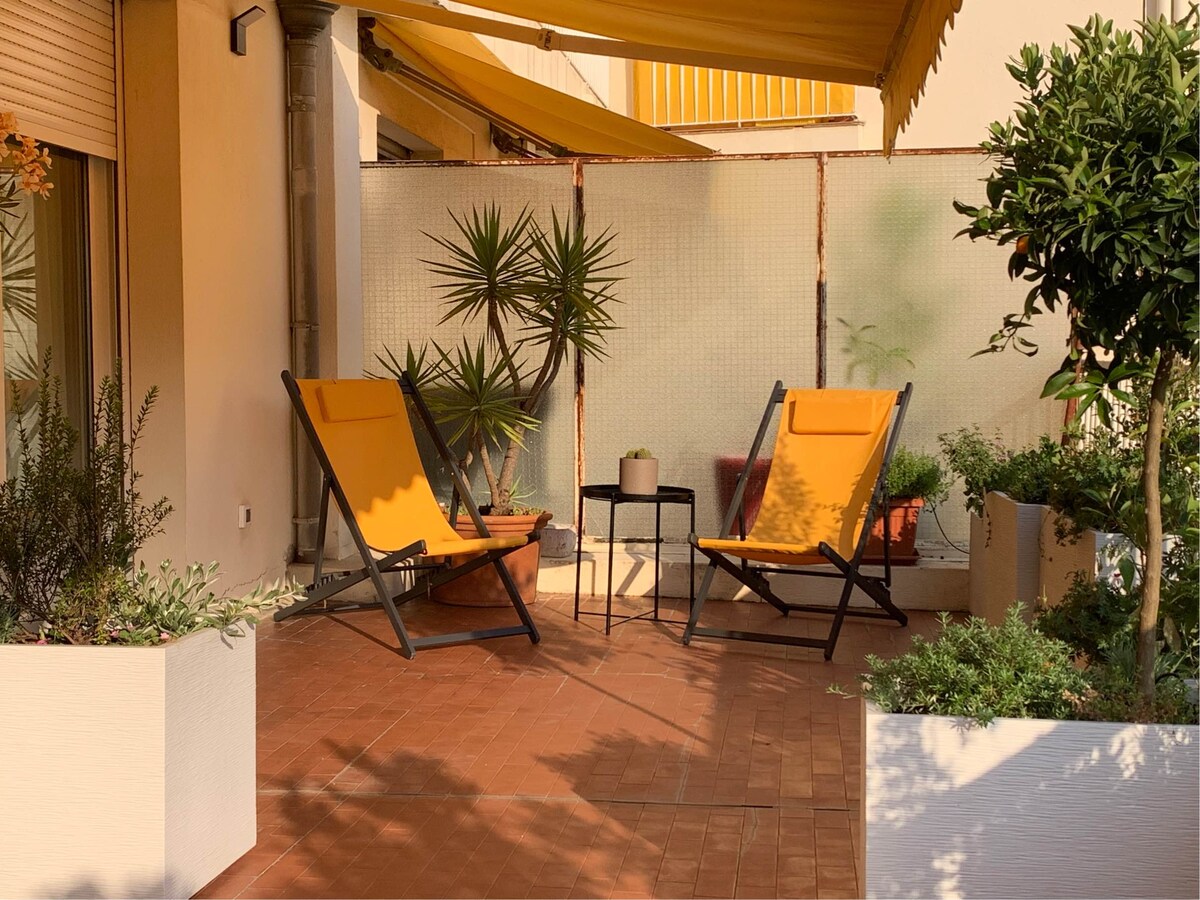 Menton espaçoso quadrado dourado 2 quartos com vista para o jardim