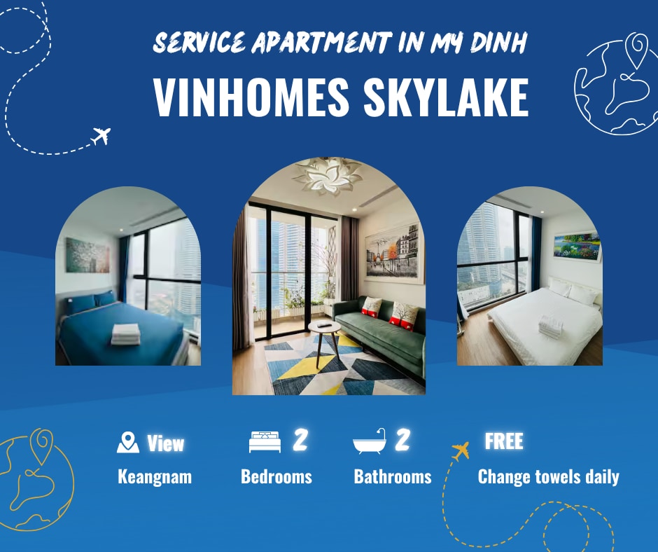 Hagi APT- Vinhomes Skylake Service Apartment - Căn hộ dịch vụ, homestay 2 phòng ngủ sang trọng tại khu đô thị cao cấp 5 sao - Vinhomes Skylake Phạm Hùng, Hà Nội. Không gian sạch sẽ, thoáng mát cùng tầm view vô cùng đẹp mắt ra toàn thành phố mang đến cho bạn những trải nghiệm vô cùng tuyệt vời tại đây. - Nằm tại vị trí trung tâm dễ dàng kết nối tới những địa điểm như: Keangnam, các khu mua sắm & vui chơi. Đặc biệt là các khu phố ẩm thực dành cho người Hàn.