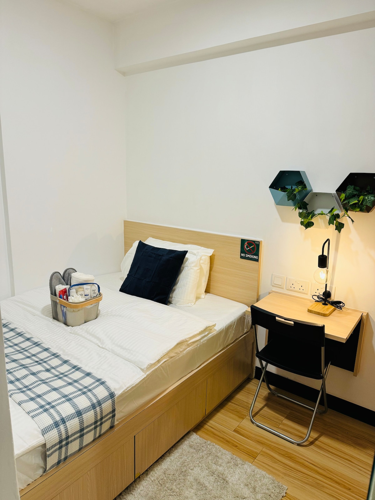 Cama de casal confortável e bem iluminada@CWB Hennessy RD