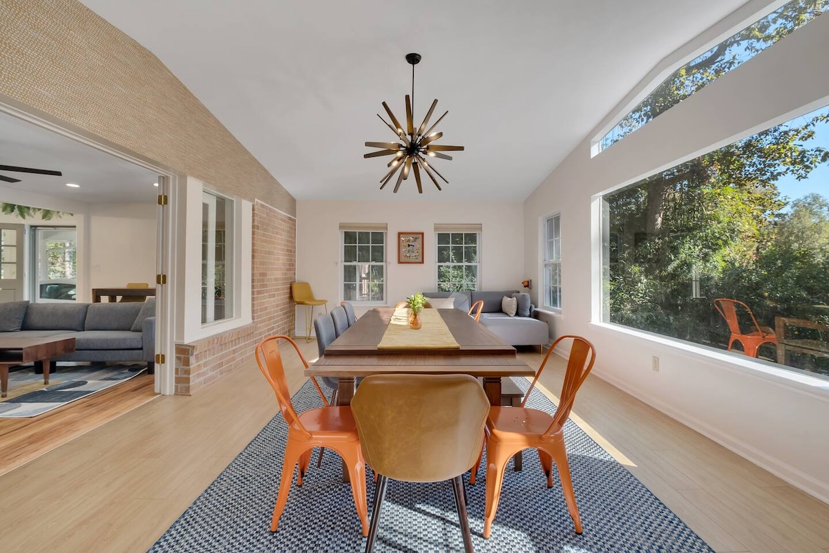 Welcome to your peaceful getaway, central to everything in Tallahassee! King bed ✔ Spacious, mural wall patio with a fenced back yard ✔ Private Parking ✔ Dogs Welcome ✔ Well-stocked kitchenette ✔ Mid-century charm ✔ Coffee, tea, snacks ✔ Cozy up with a movie in front of the custom wood slat wall, cook dinner in the kitchenette, and get a quiet night's rest under a stylish wood ceiling. You are: - 5 mins from TMH - 8 mins to downtown - 8 mins to FSU - 7 mins from I-10