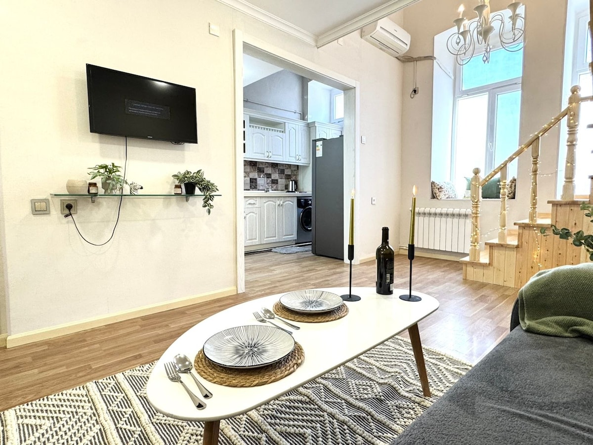 Apartamento aconchegante e limpo em uma localização muito conveniente para turistas e passageiros em trânsito do aeroporto - a 5 minutos do aeroporto e de duas estações de trem. A estação rodoviária mais próxima fica a 100 metros de distância. 5 minutos de táxi para o centro da cidade ou 10 minutos de transporte público. (5 minutos de ônibus da estação de metrô "Tashkent") Área desenvolvida ao redor do apartamento onde você pode encontrar qualquer coisa. Há várias mercearias grandes e pequenas perto, também variedade de cafés, restaurantes e assim por diante. Internet de alta velocidade ilimitada.