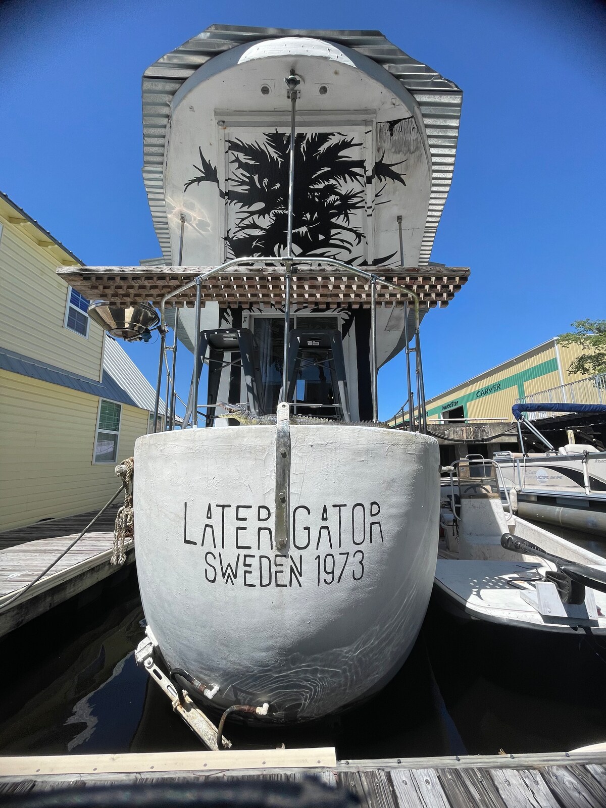Este barco de ferrocimento Later Gator foi feito na Suécia em 1973. Isso mesmo! É feito de concreto! O barco circunavegou o globo duas vezes antes de finalmente acabar aqui na ensolarada Sanford FL. Passamos 2 anos renovando completamente tudo e tentamos deixar o máximo da personalidade original do barco intacta, adicionando comodidades modernas. Restaurante/bar, piscina, lavanderia, chuveiros e banheiros, lanchonete e loja de marina todos no local, e centro histórico de Sanford e rio a pé nas proximidades.