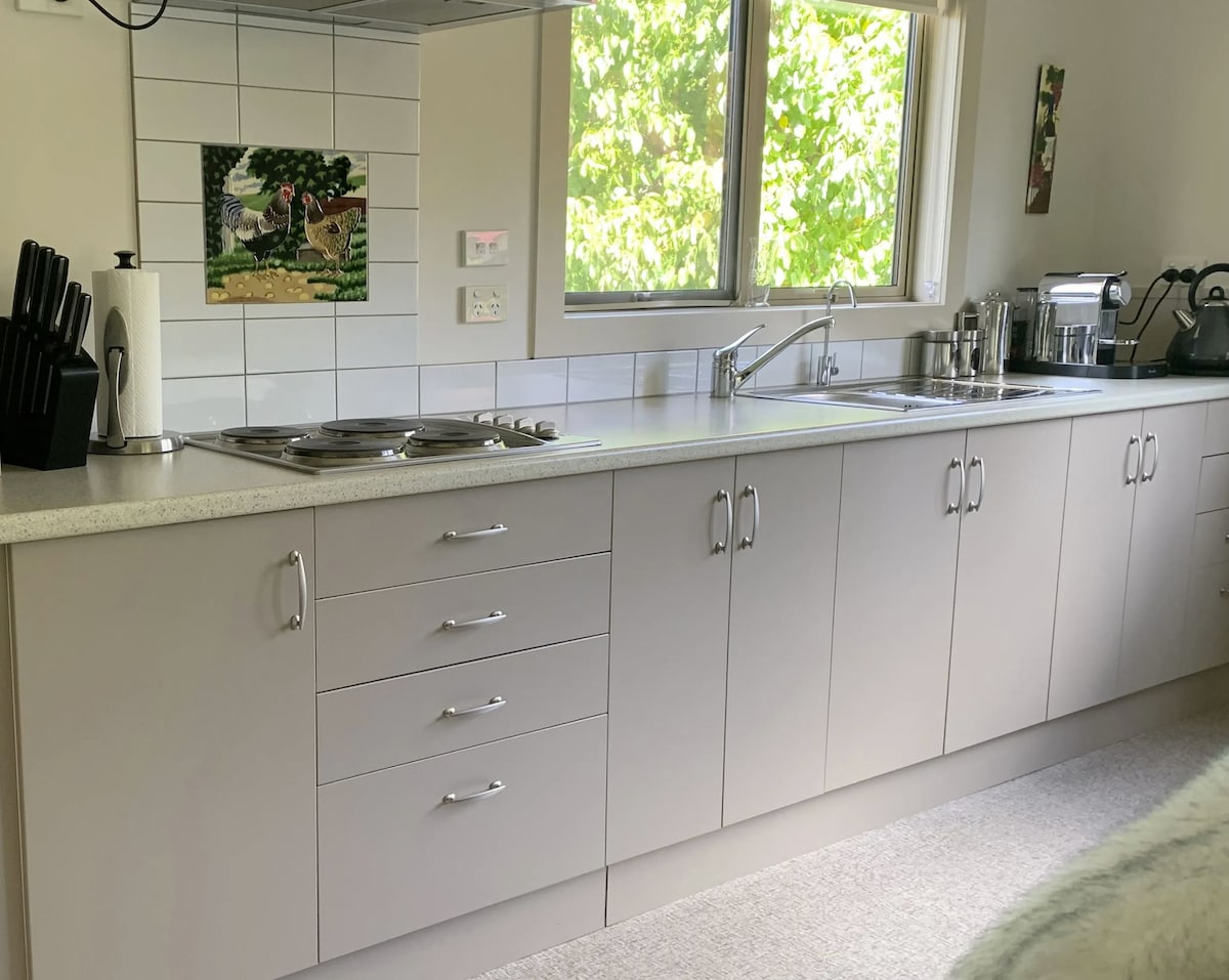 Estamos localizados dentro da histórica vila de mineração de ouro de Clyde, Central Otago. Apenas 5 minutos a pé de cafés e restaurantes premiados. Nosso apartamento temporário, elegante e recém-construído, é quente, ensolarado e cercado por um jardim estabelecido com árvores frutíferas de 80 anos. Temos uma cozinha totalmente funcional, um banheiro de azulejos aquecido sob o piso, com banheira completa para aliviar os músculos doloridos após um longo passeio nas trilhas ferroviárias locais. Duas camas Super King super confortáveis.
