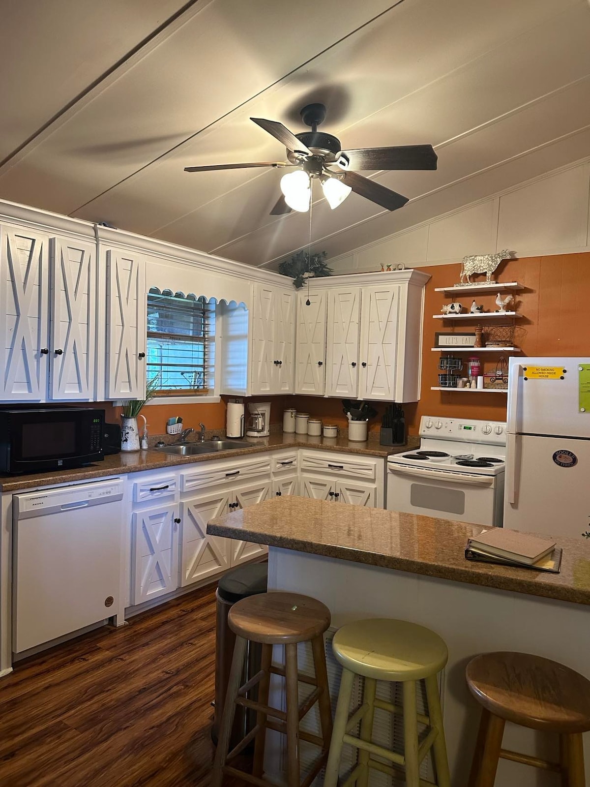 3 queen beds, great for group of friends or family getaway. All 3 rooms have smart TVs ready to login to your streaming services. The LR tv has a Roku stick. Has HVAC, extra fans, Wi-Fi, a washing machine & dryer. The office room, big enough to put an air mattress or pack n play, also has a tv screen with DVD player. This home has access to a community boat ramp & dock. (For an extra charge, there are hookups for a camper, message if you would like to book the home &camper lot at the same time)