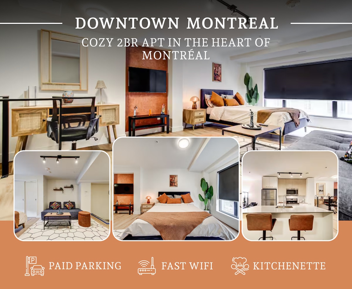 Aproveite o melhor do centro de Montreal neste elegante apartamento de 2 quartos e 1 banheiro a poucos passos da animada Crescent Street. Com um layout iluminado, acabamentos modernos e uma localização cercada por restaurantes, boutiques e vida noturna, este espaço acolhedor é perfeito para viajantes que procuram explorar a cidade com facilidade. Seja para uma viagem de férias na cidade, viagem de negócios ou estadia prolongada, esta acomodação confortável oferece tudo o que você precisa para uma experiência inesquecível.