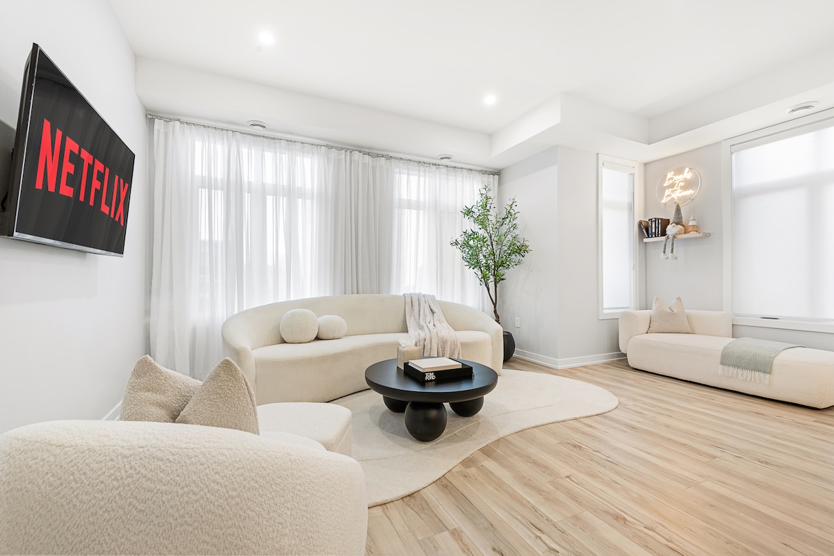 Bem-vindo ao seu refúgio de luxo privativo de 3.000 pés quadrados em Stittsville, Ottawa. Esta casa de 4 quartos e 3 banheiros combina estilo, espaço e conforto com tetos altos, uma TV inteligente de 75" + lareira e sua própria academia privativa. Relaxe no pátio do quintal, cozinhe na cozinha totalmente equipada e desfrute de muito espaço para famílias, grupos ou profissionais. Perto das atrações de Ottawa, mas situado em um bairro tranquilo — o equilíbrio perfeito entre elegância e conveniência.