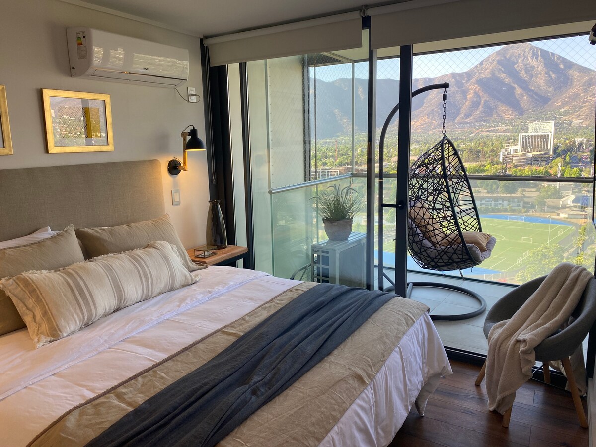 Suíte King Metro Manquehue com pôr do sol deslumbrante!